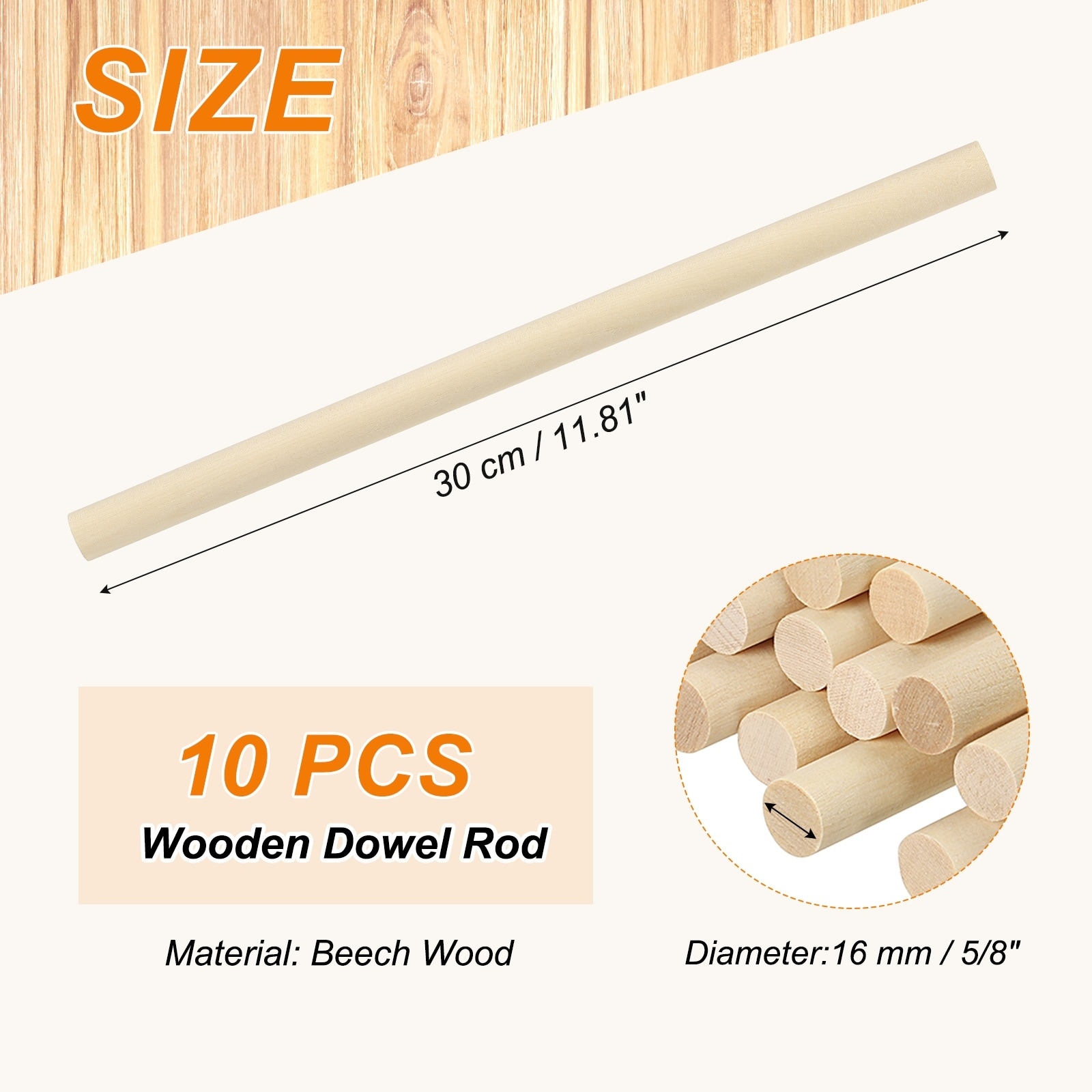 Wooden Dowel Rod, Wood Dowels Unfinished Round Wood Sticks Hardwood Sticks for Home Decor - Natural Color