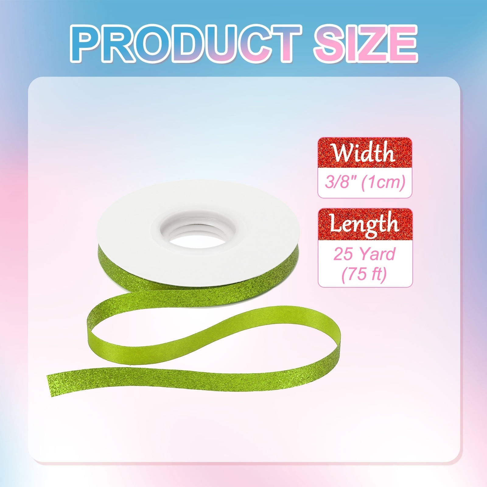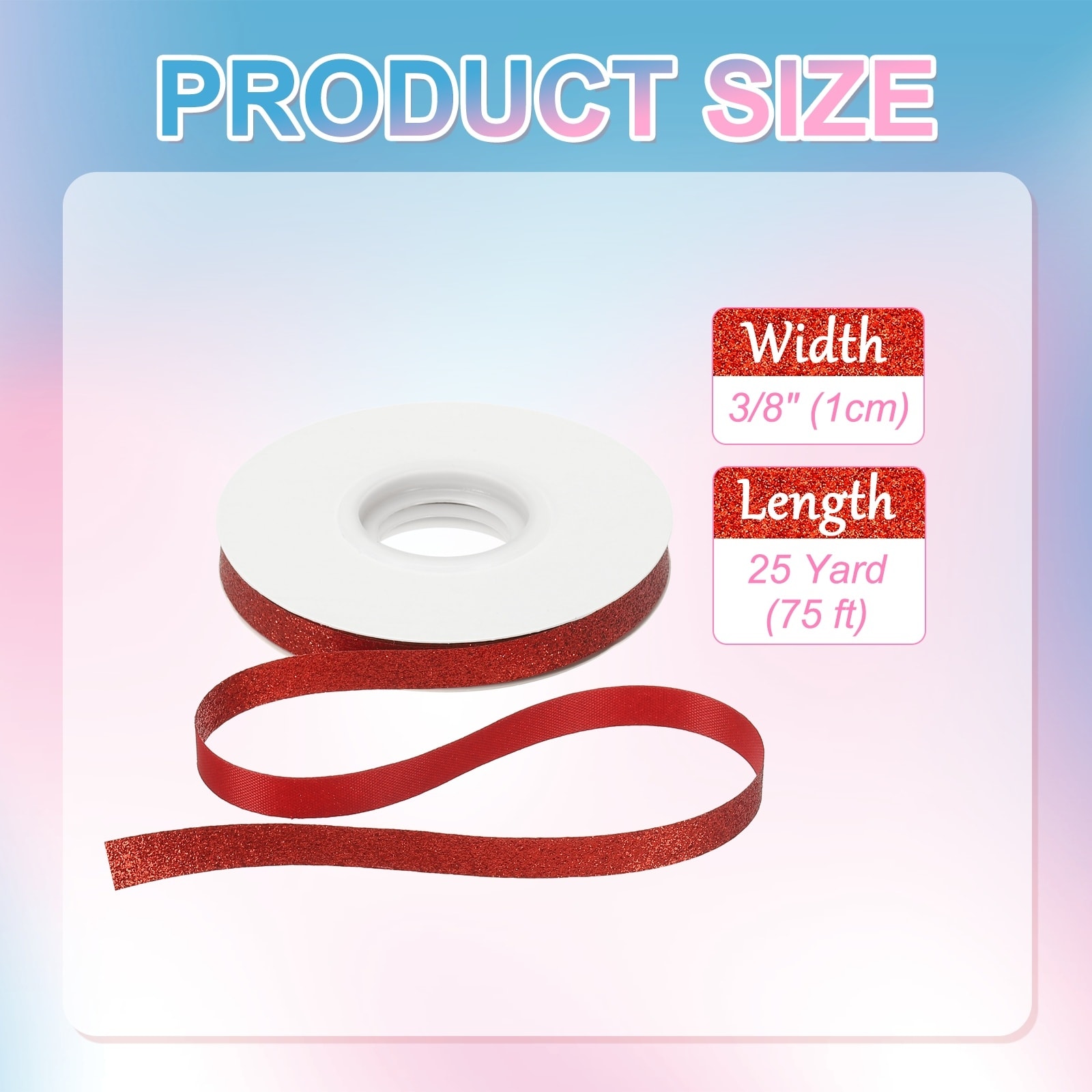 Metallic Glitter Ribbon Roll, Sparkly Ribbon Single Sided Cut Edge Design Gift Wrapping Fabric Rolls - 3/8 Inch x 25 Yards