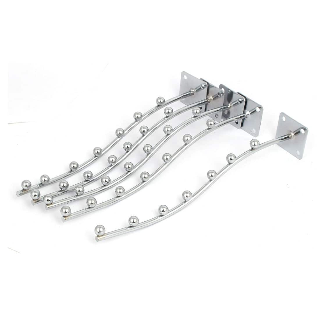 Wall Mount Waved Waterfall Hanger Rack 7 Beads Garment Display Hooks 5pcs - Silver Tone