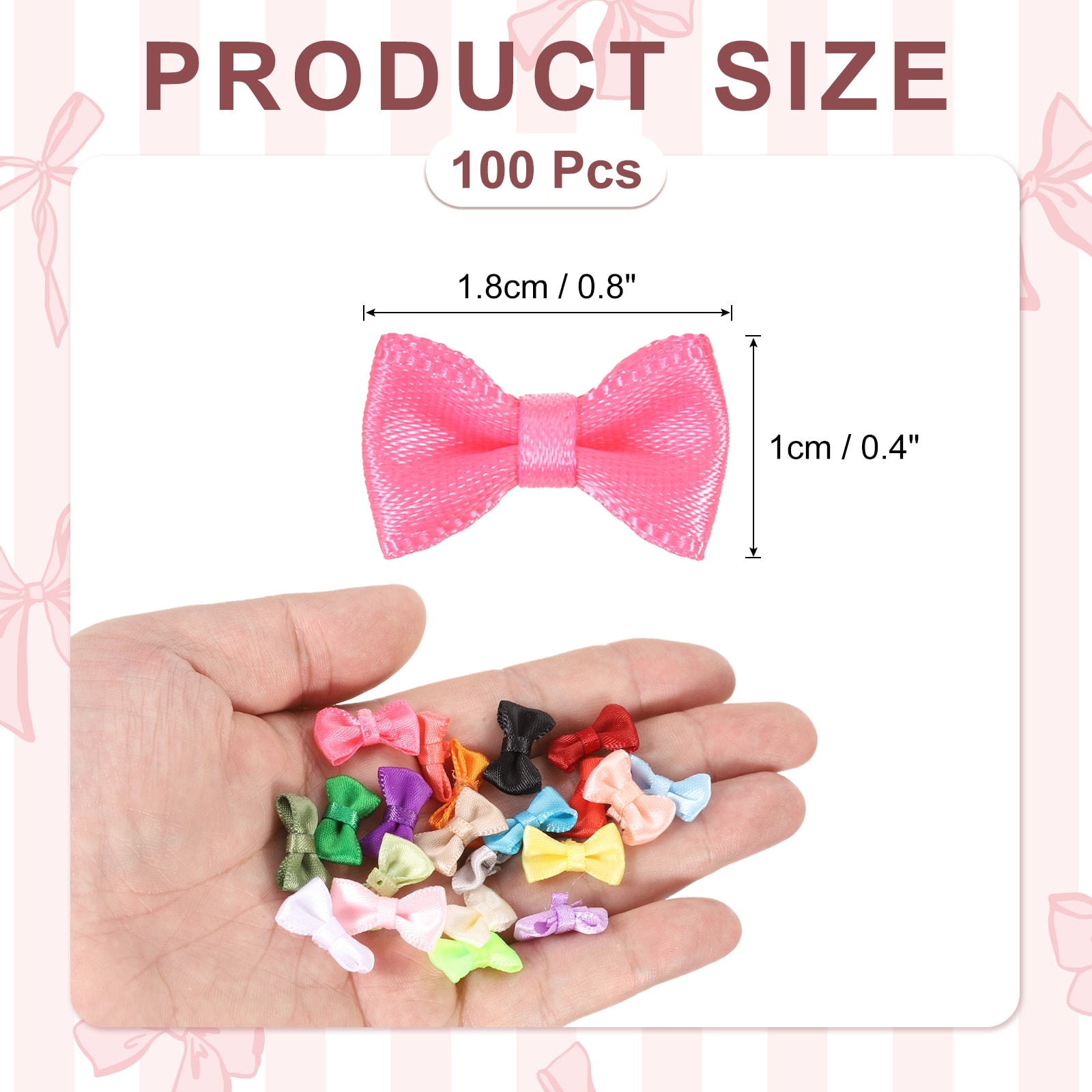 Mini Ribbon Bow Mini Fabric Satin Ribbon Flower Bows for Craft - 100 Pcs, 0.8"