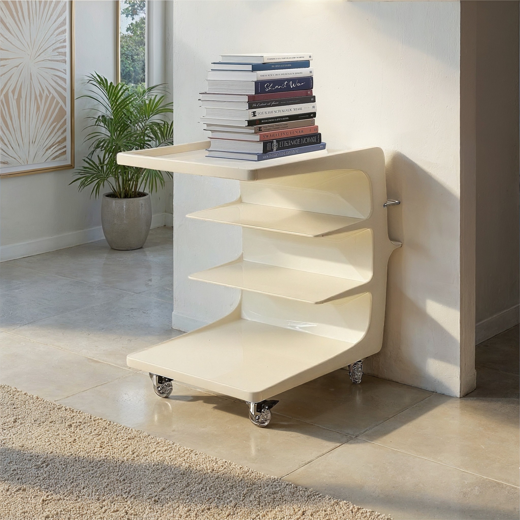 Plastic Cart on Casters with 3 Shelves, Book Ledge and Bar - 20.88"L x 15.75"W x 21.63"H