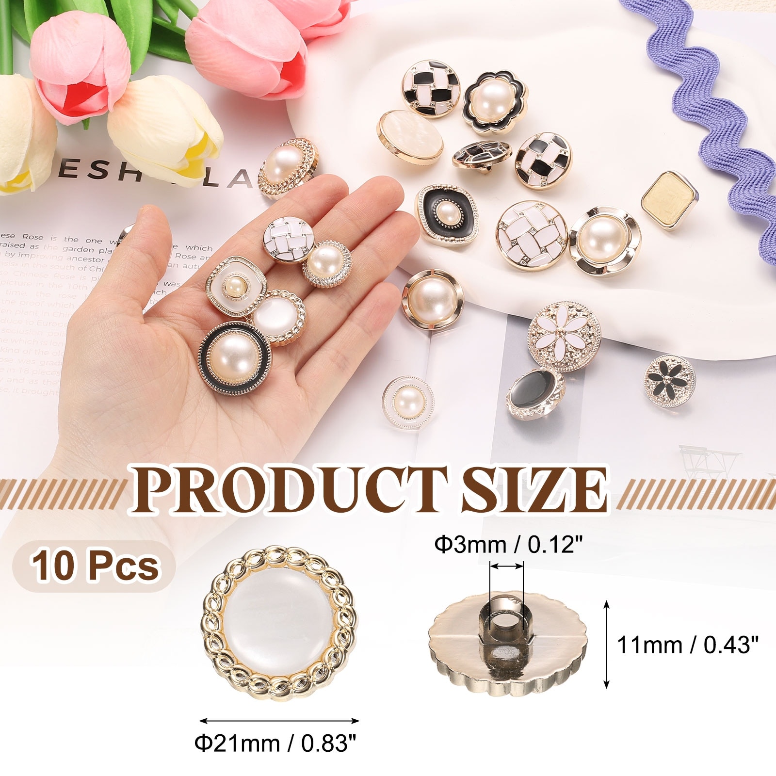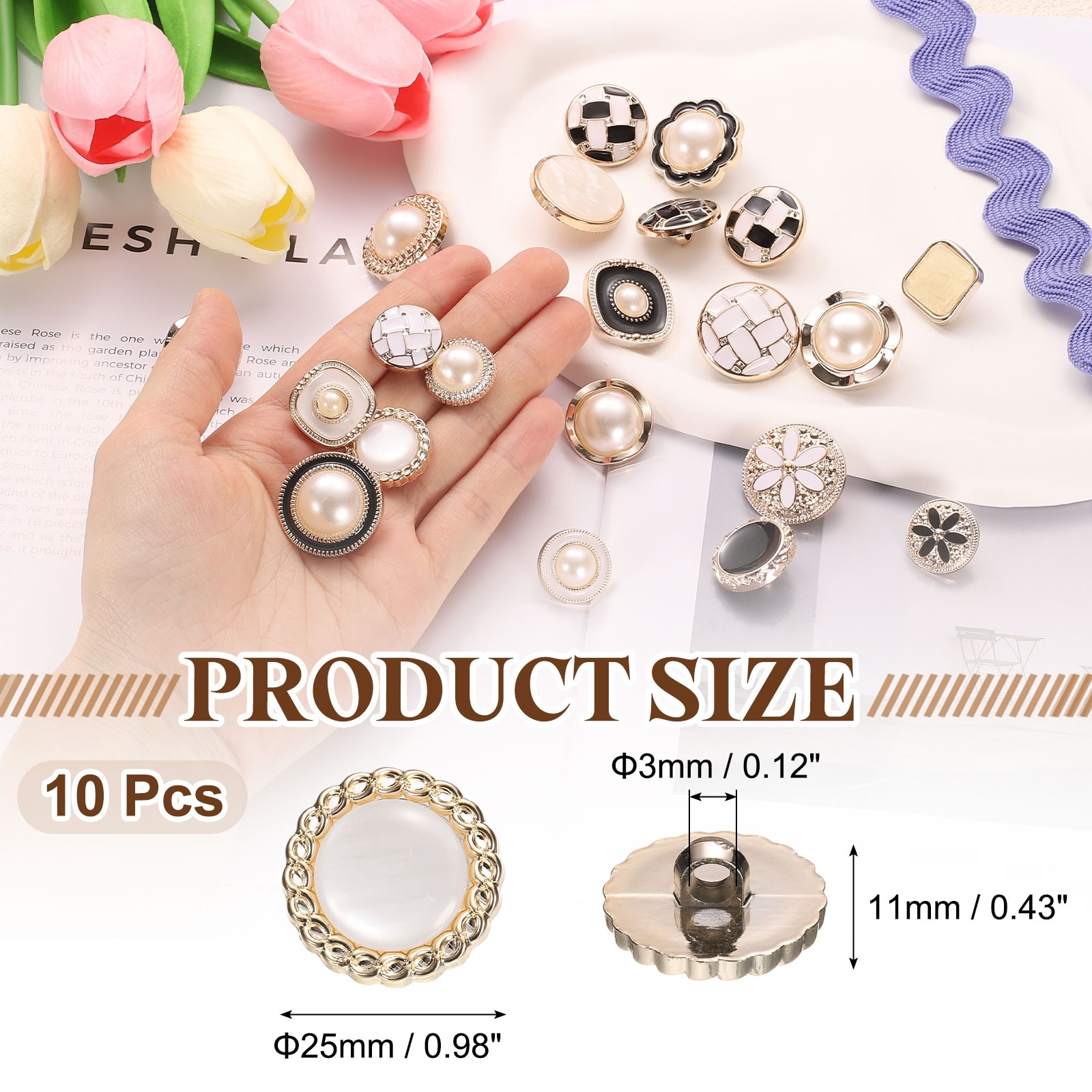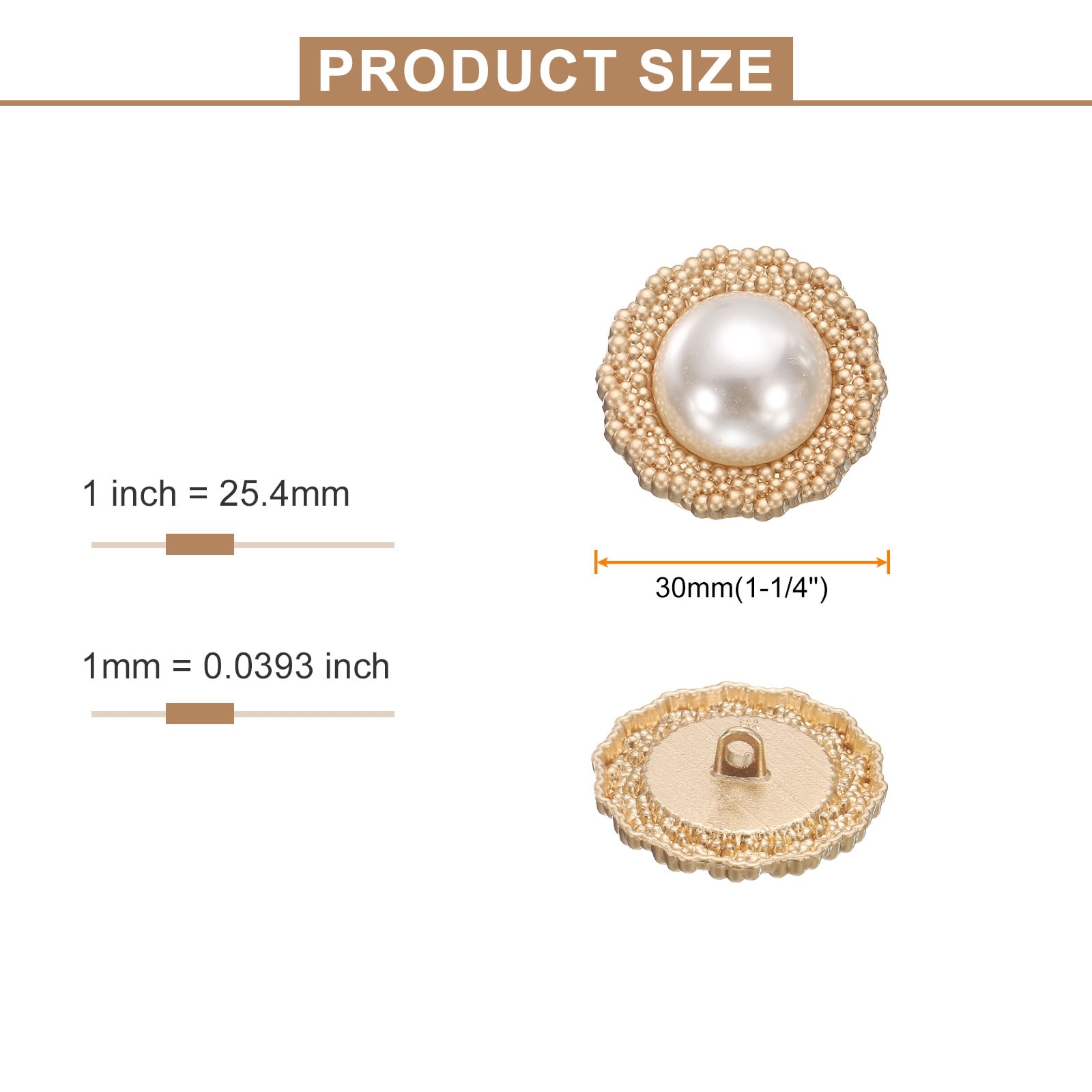 Faux Pearl Buttons Plastic Round Sewing Button Replacement Fastener for Coats Clothing DIY Decoration Crafts - Gold-White