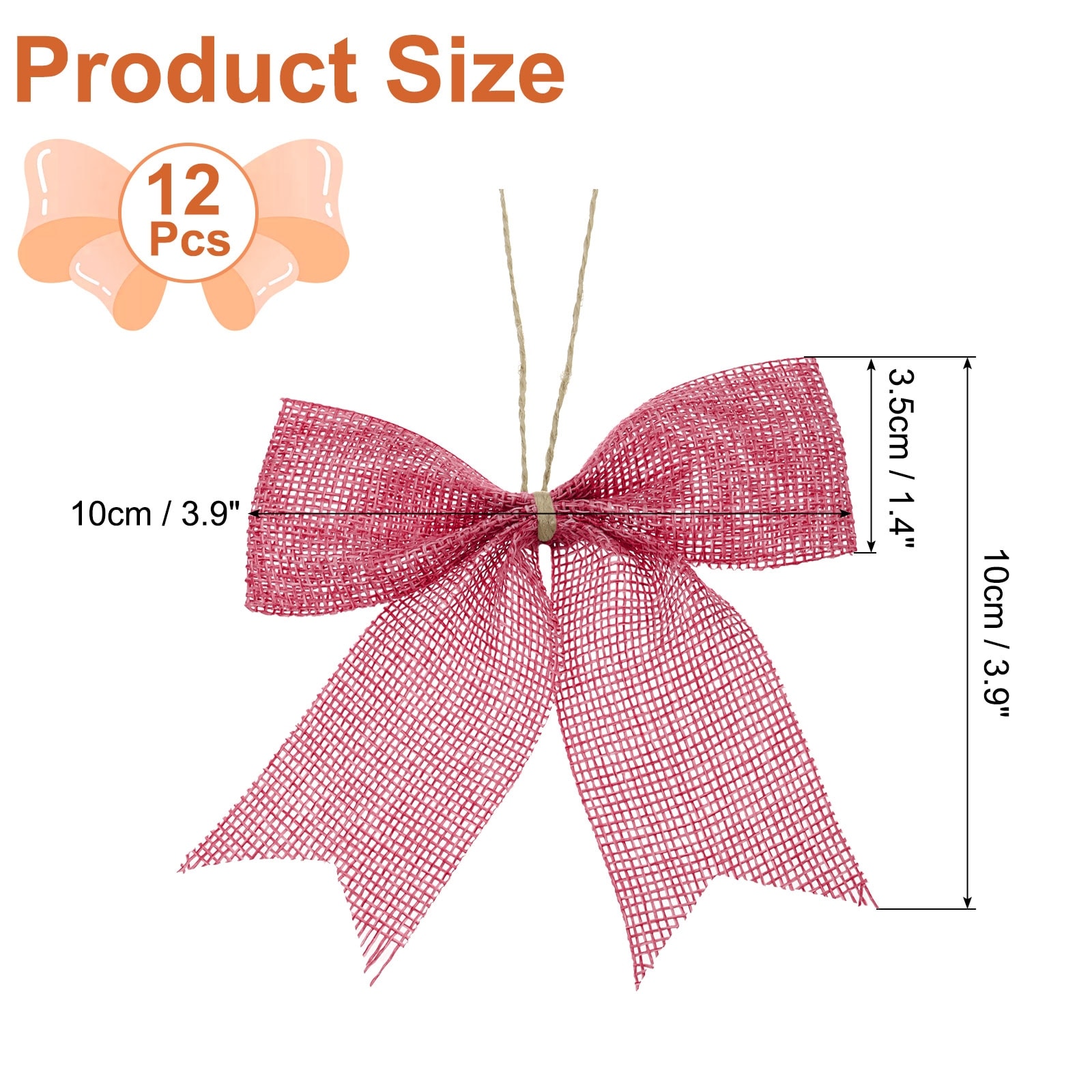 Mini Burlap Bows for Crafts, Handmade Bow Knot Natural Decorative Ornament Bow Pre-Tied Christmas Bowknot