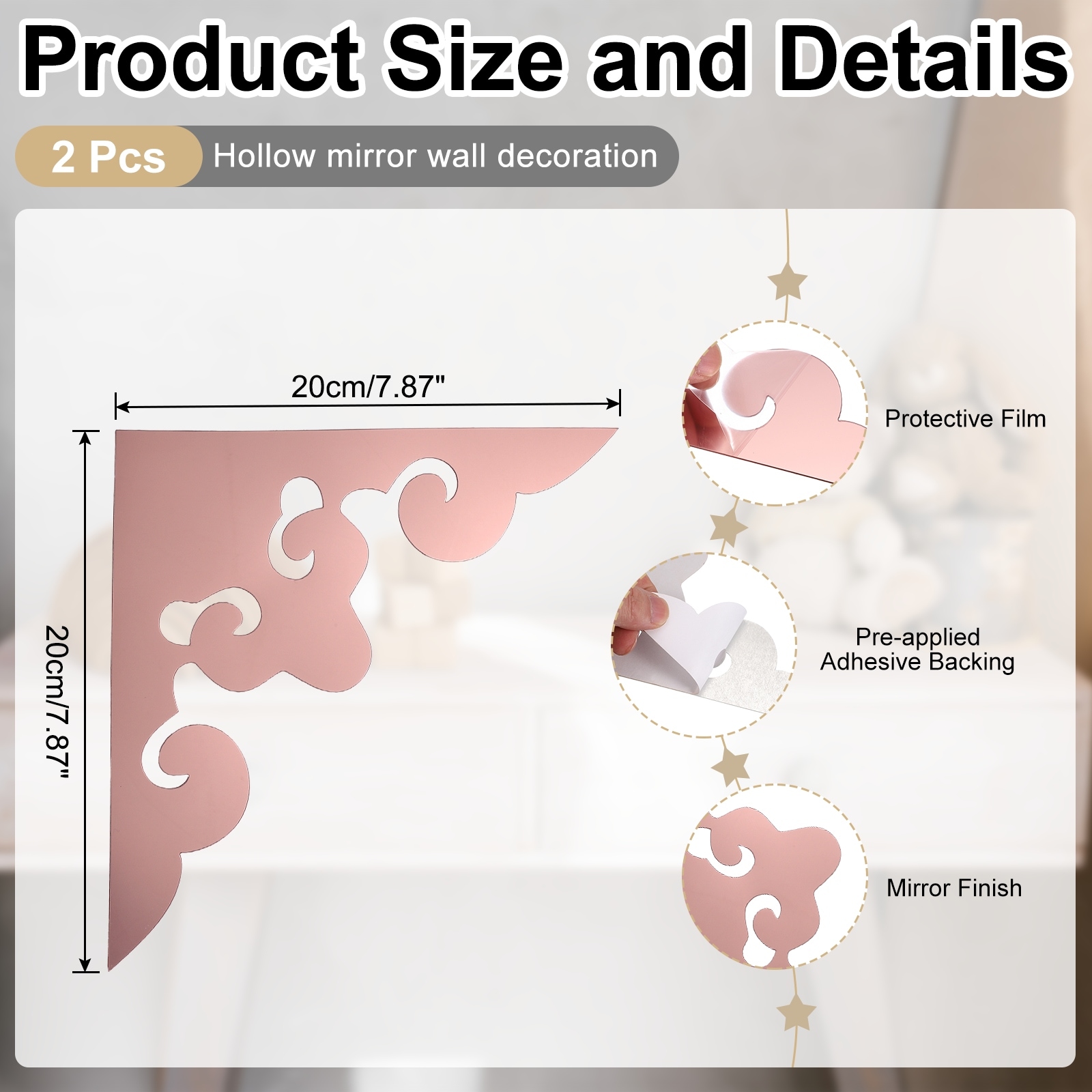 Hollow Mirror Wall Stickers, Acrylic Corner Decorative Pattern Decals Self Adhesive Mirror Stickers for Bathroom