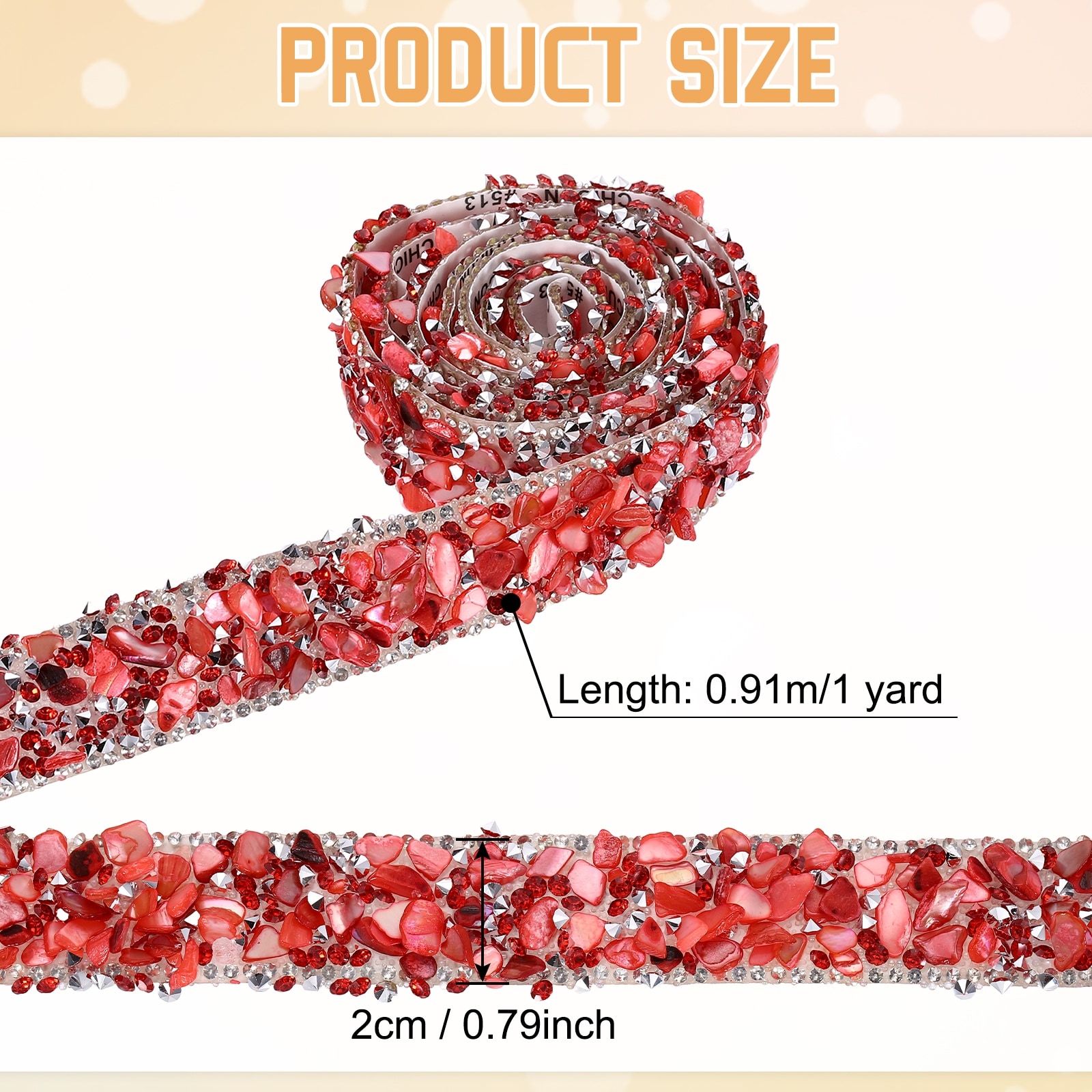 Crystal Rhinestone Ribbon, Self Adhesive Ribbon Strips Bling Artificial Gem Stone Beaded Applique for DIY Crafts - 1 Yardx0.79"