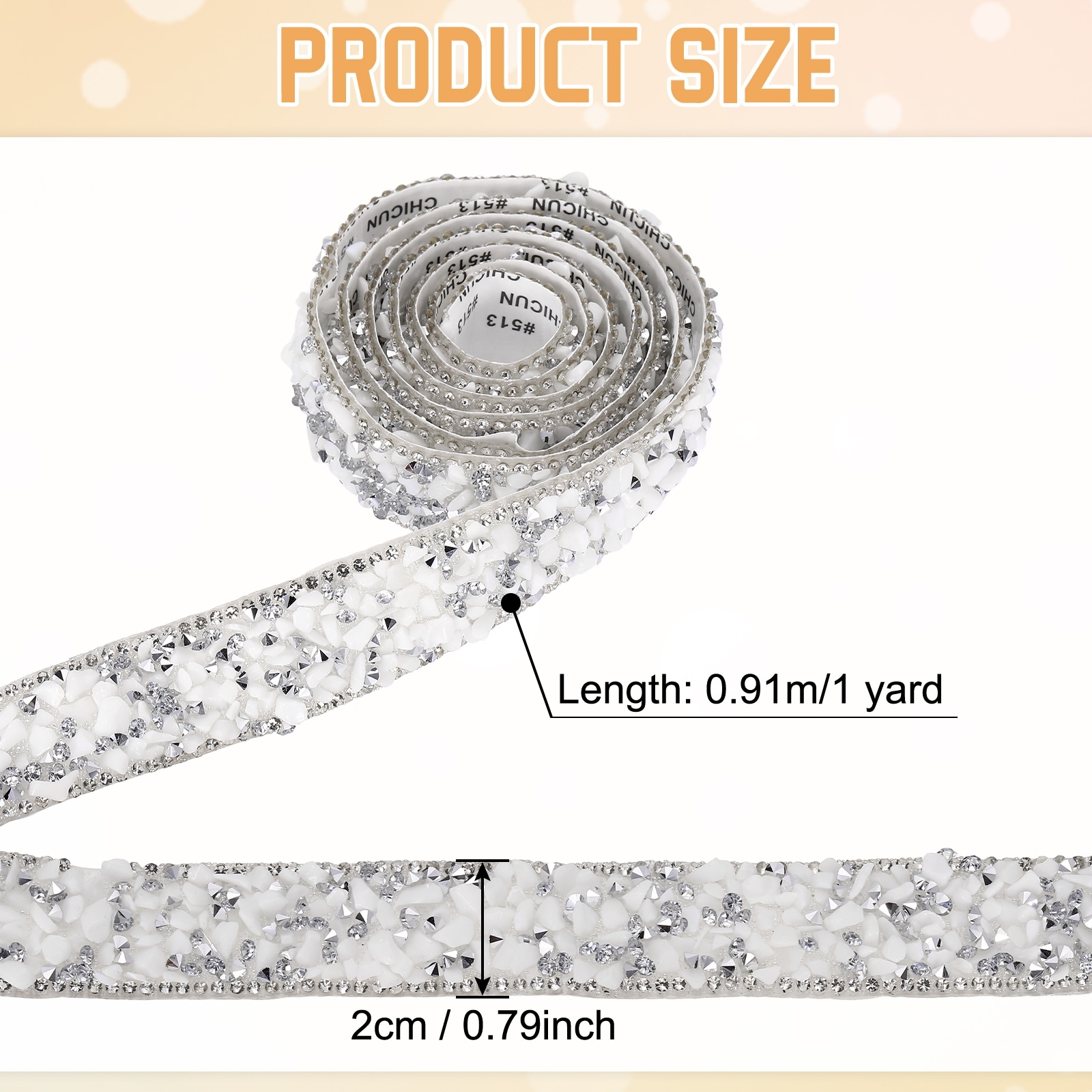 Crystal Rhinestone Ribbon, Self Adhesive Ribbon Strips Bling Artificial Gem Stone Beaded Applique for DIY Crafts - 1 Yardx0.79"