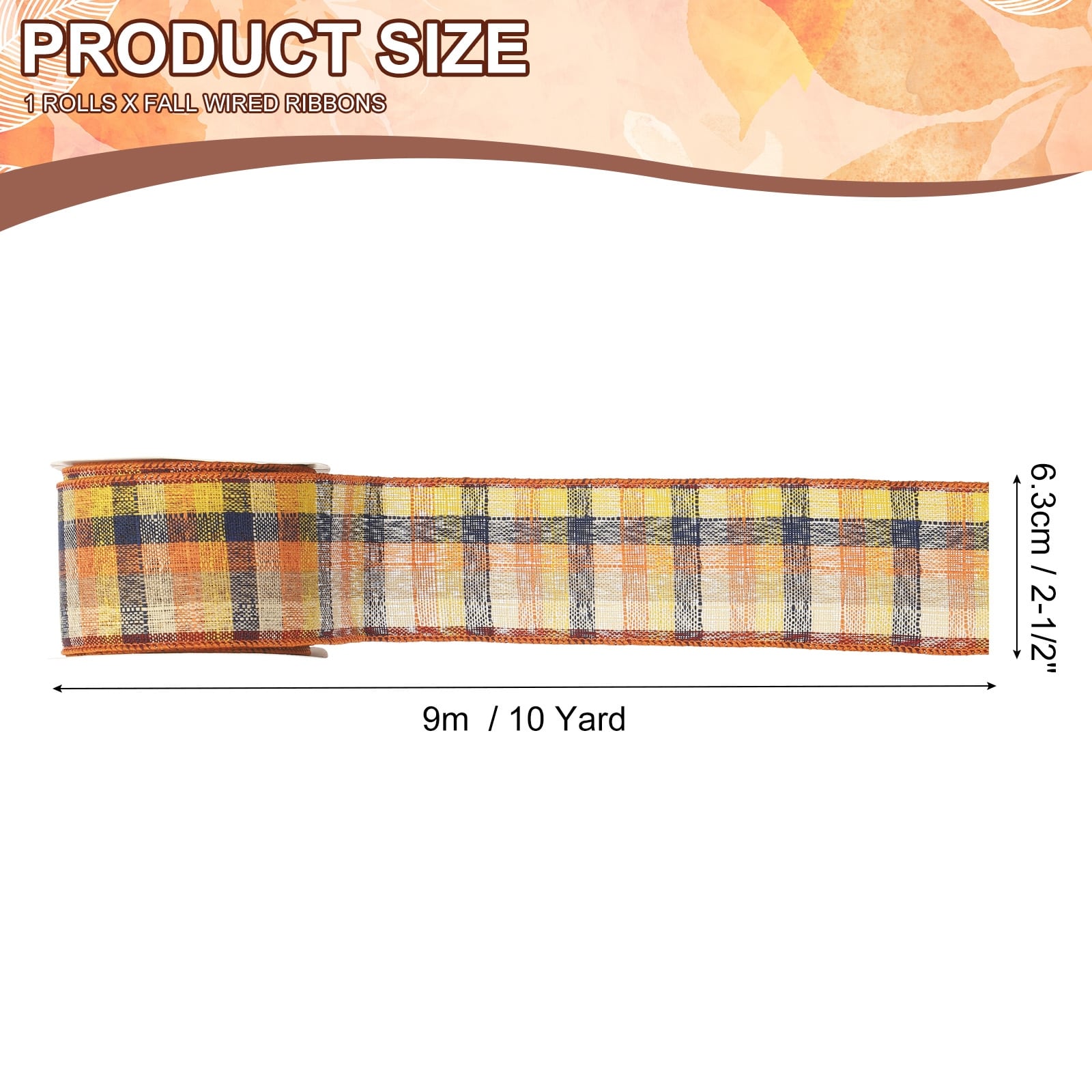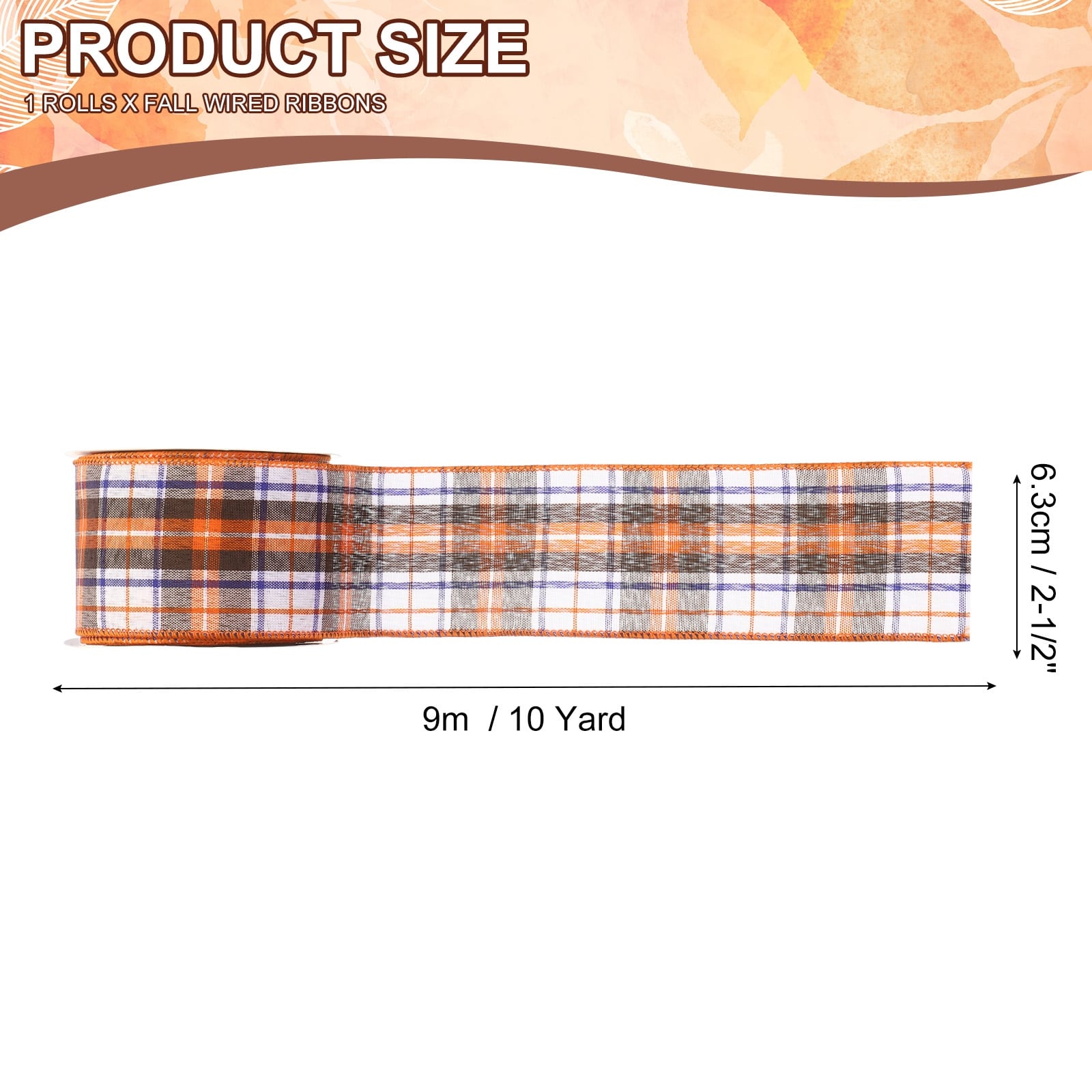 Fall Wired Edge Ribbons, Fall Plaid Burlap Ribbon Check Ribbon for Thanksgiving Autumn Party DIY Craft Big Bows Wreath Wrapping