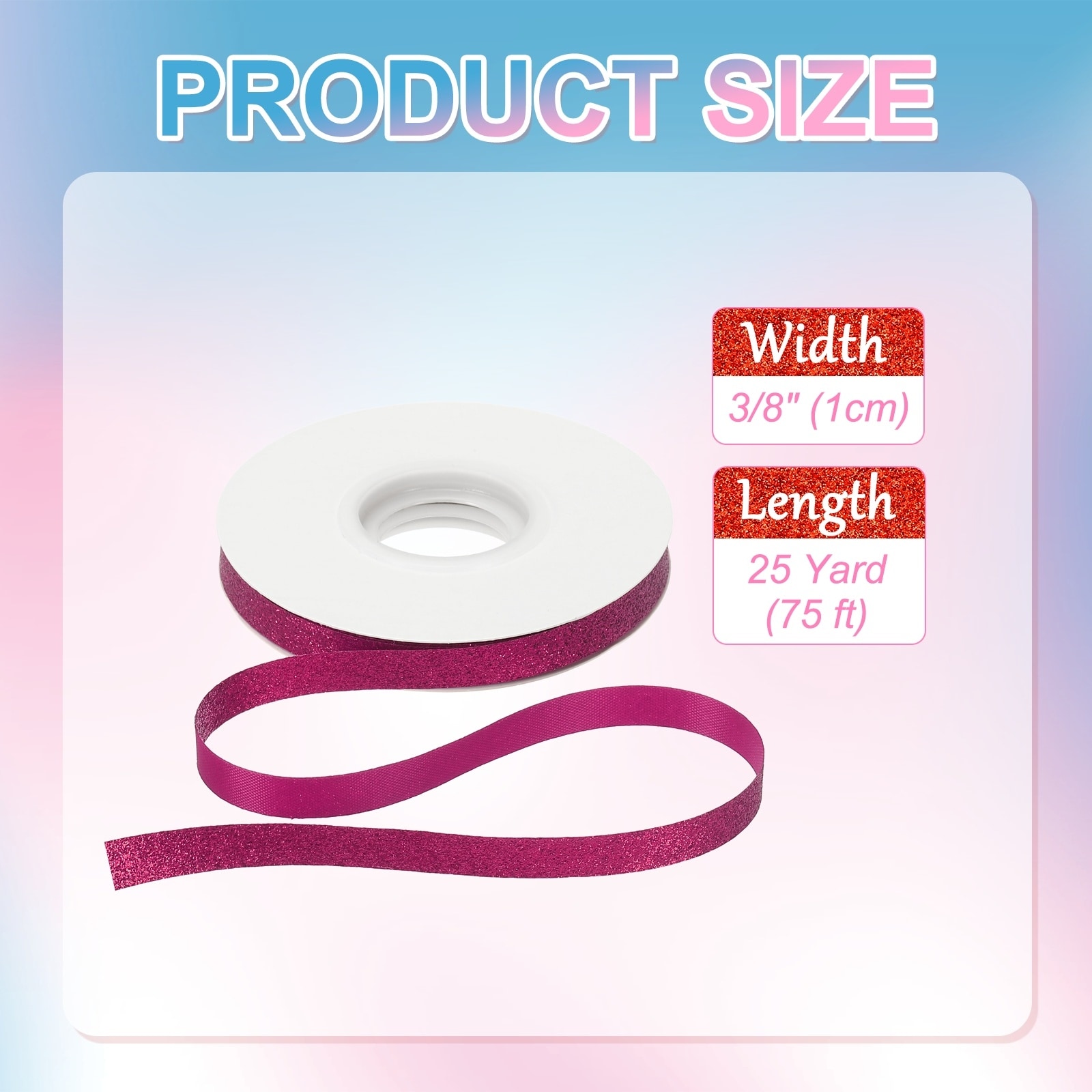 Metallic Glitter Ribbon Roll, Sparkly Ribbon Single Sided Cut Edge Design Gift Wrapping Fabric Rolls - 3/8 Inch x 25 Yards
