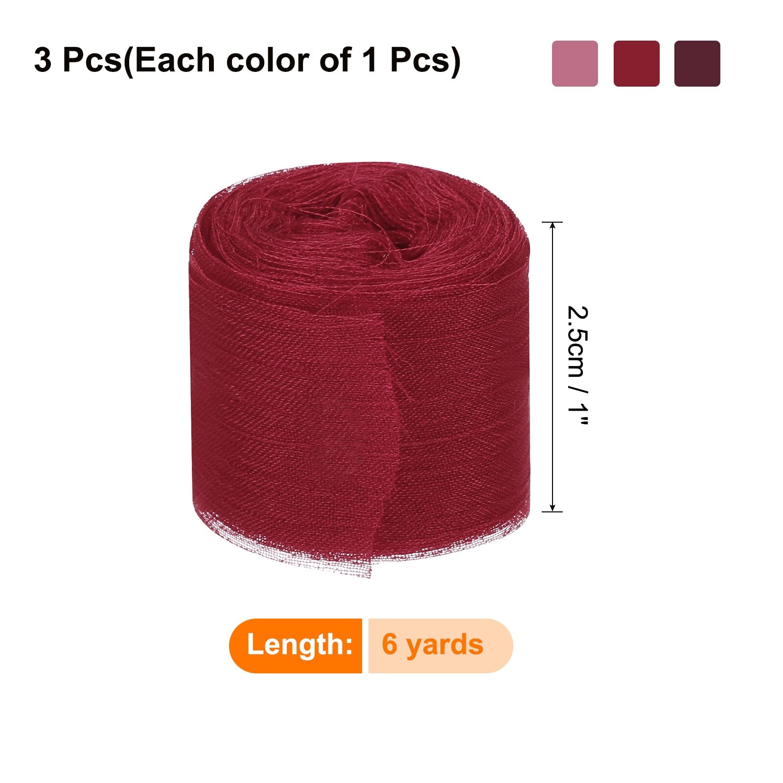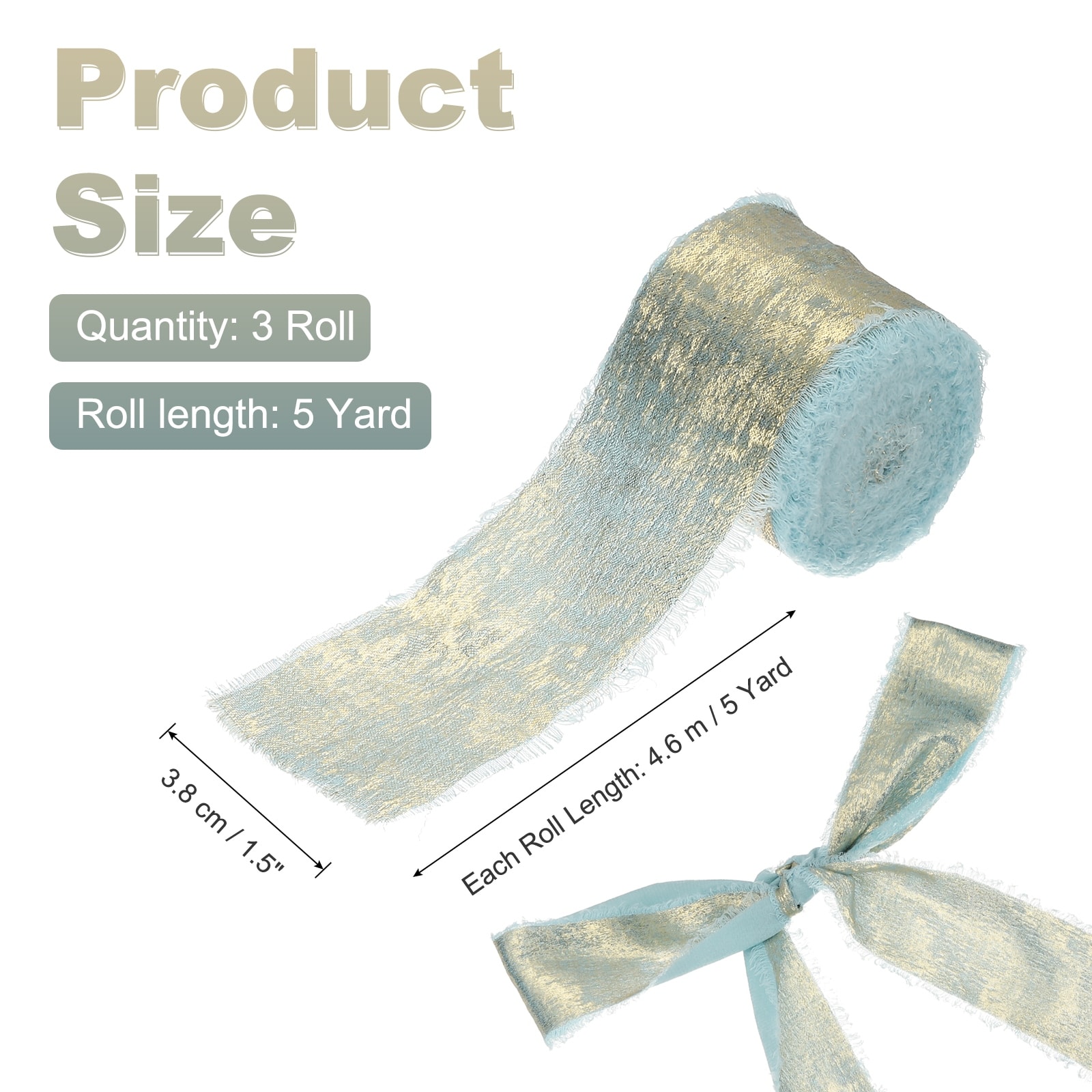 Shimmery Chiffon Ribbon, 3 Roll Metallic Frayed Fringe Ribbon Silk Satin for Flower Bouquet Gift Wrapping Wedding Invitations