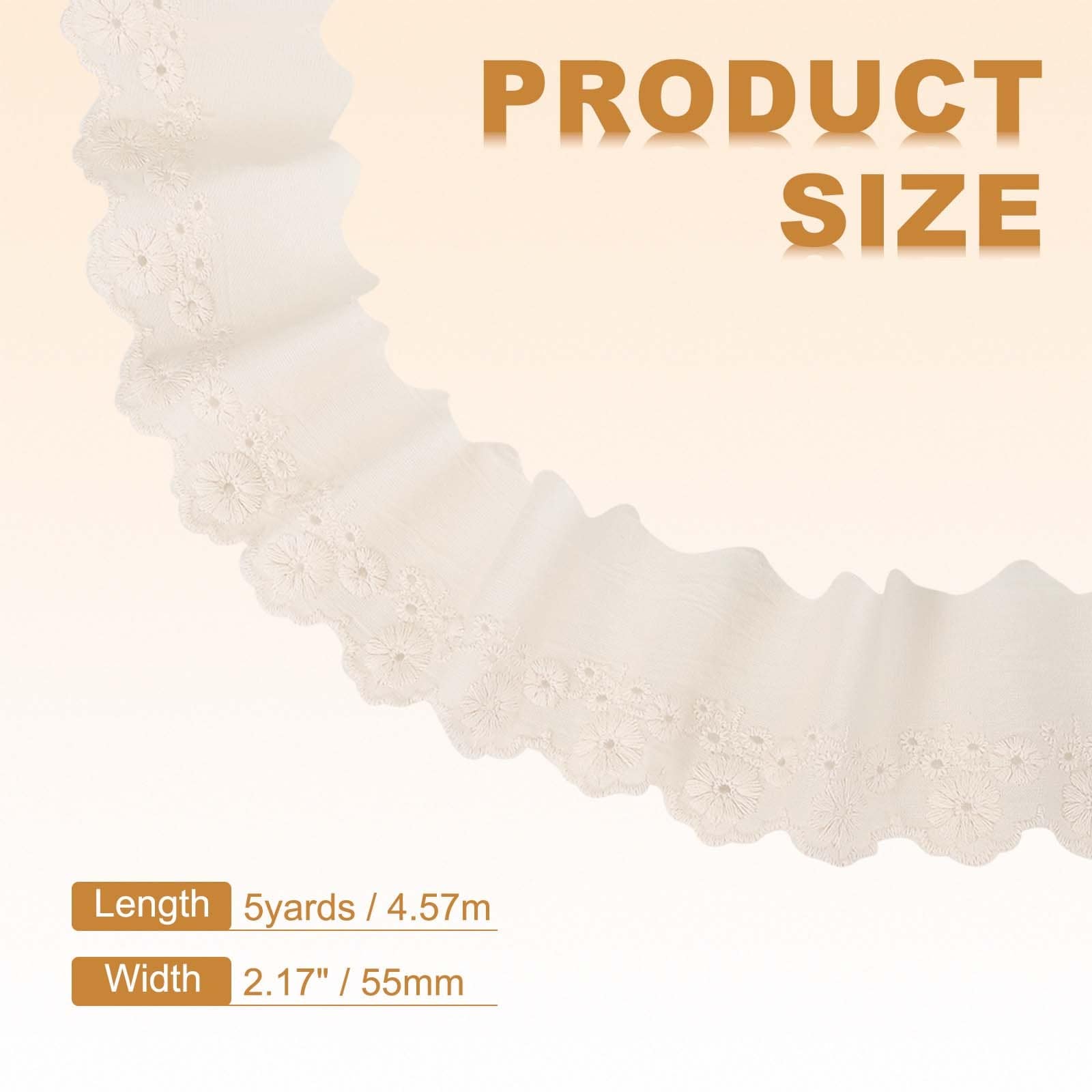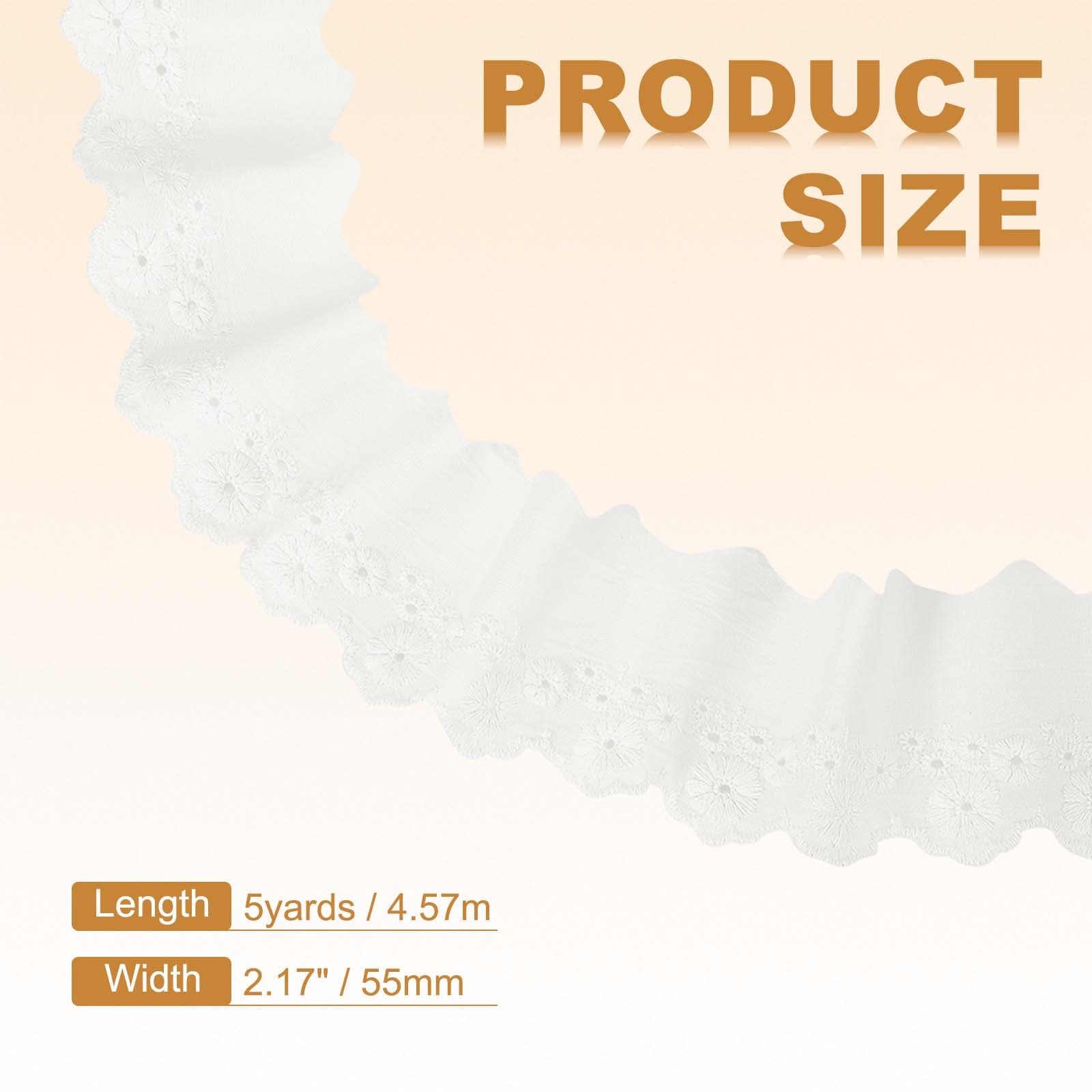 Eyelet Lace Trim, Wide Floral Cotton Lace Ribbon Embroidery Ruffle Ribbon Trim for Sewing Dress Apron Pillow Clothes Bag
