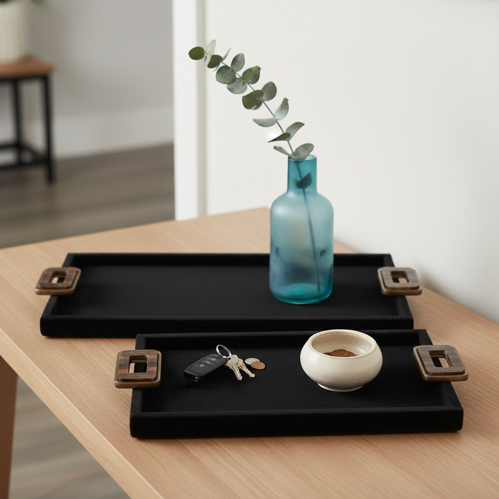 Metal Decorative Trays with Wood Handles - Set of 2 -Black, 16" - 22.0"