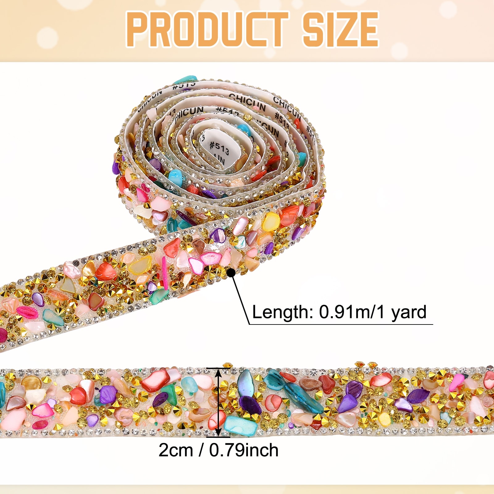 Crystal Rhinestone Ribbon, Self Adhesive Ribbon Strips Bling Artificial Gem Stone Beaded Applique for DIY Crafts - 1 Yardx0.79"