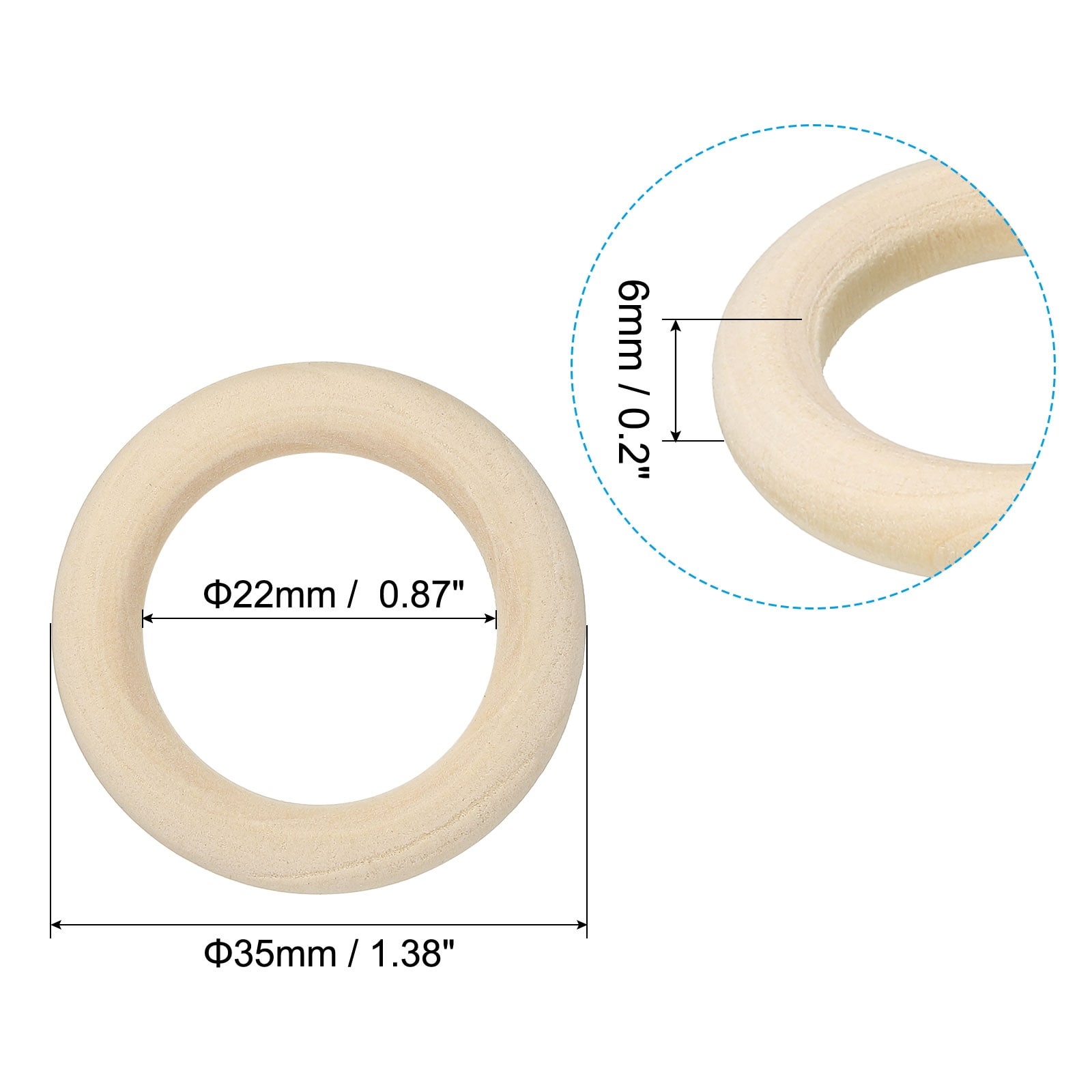 Unfinished Wooden Rings, Natural Solid Wood Rings Circle for DIY Craft Ring - Wood Color