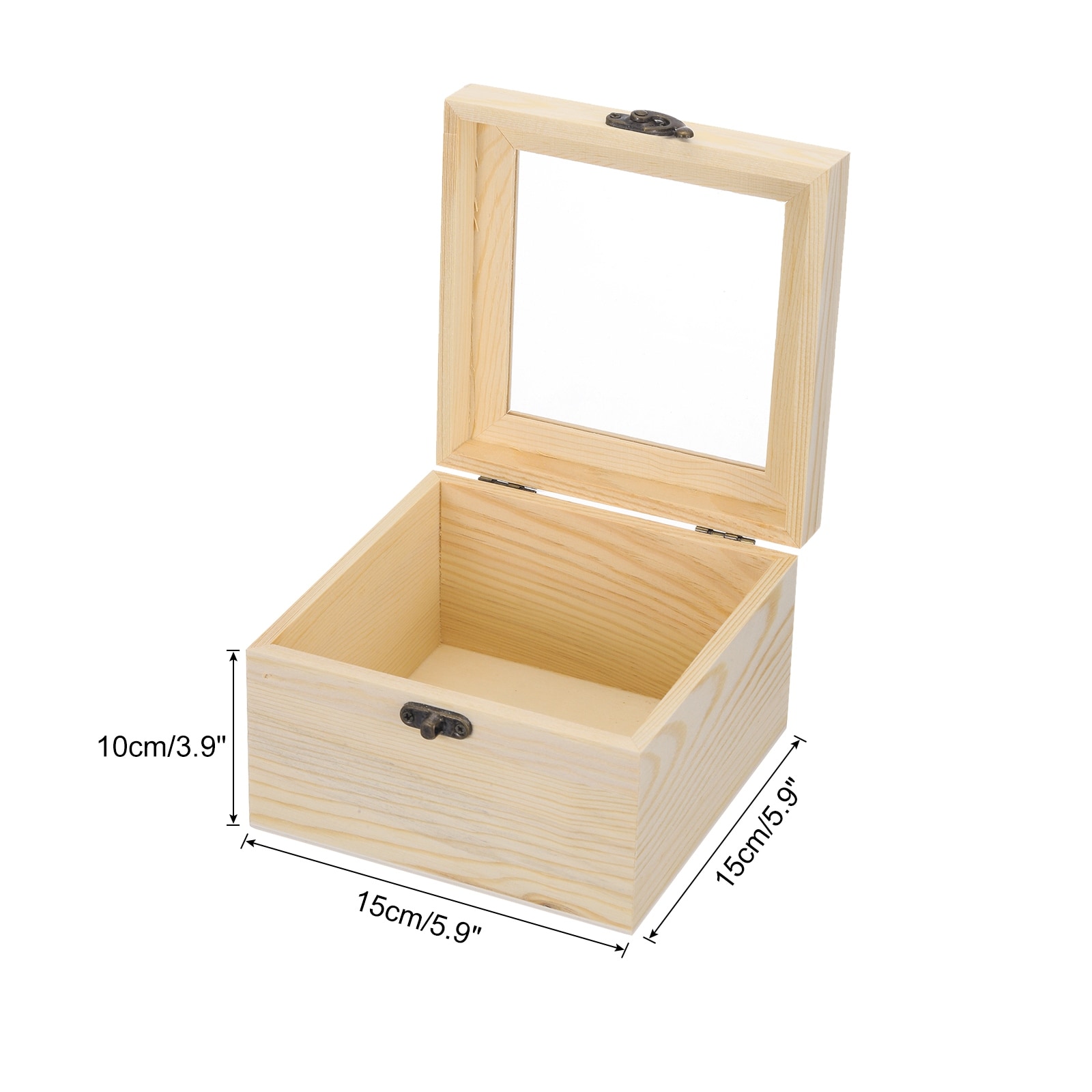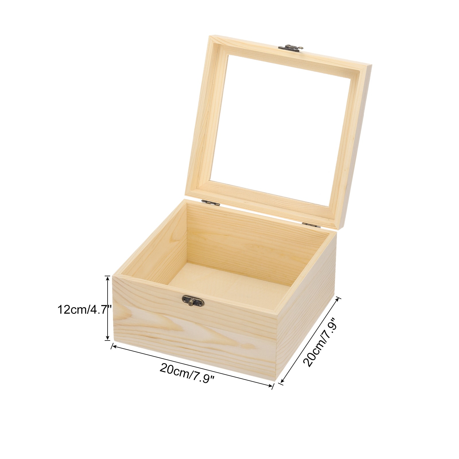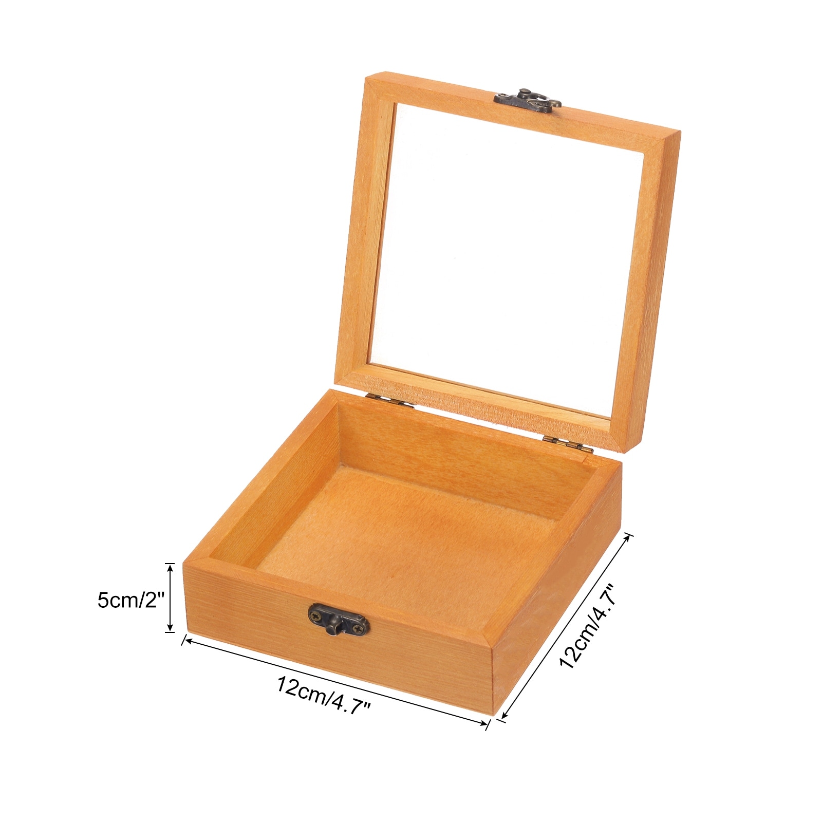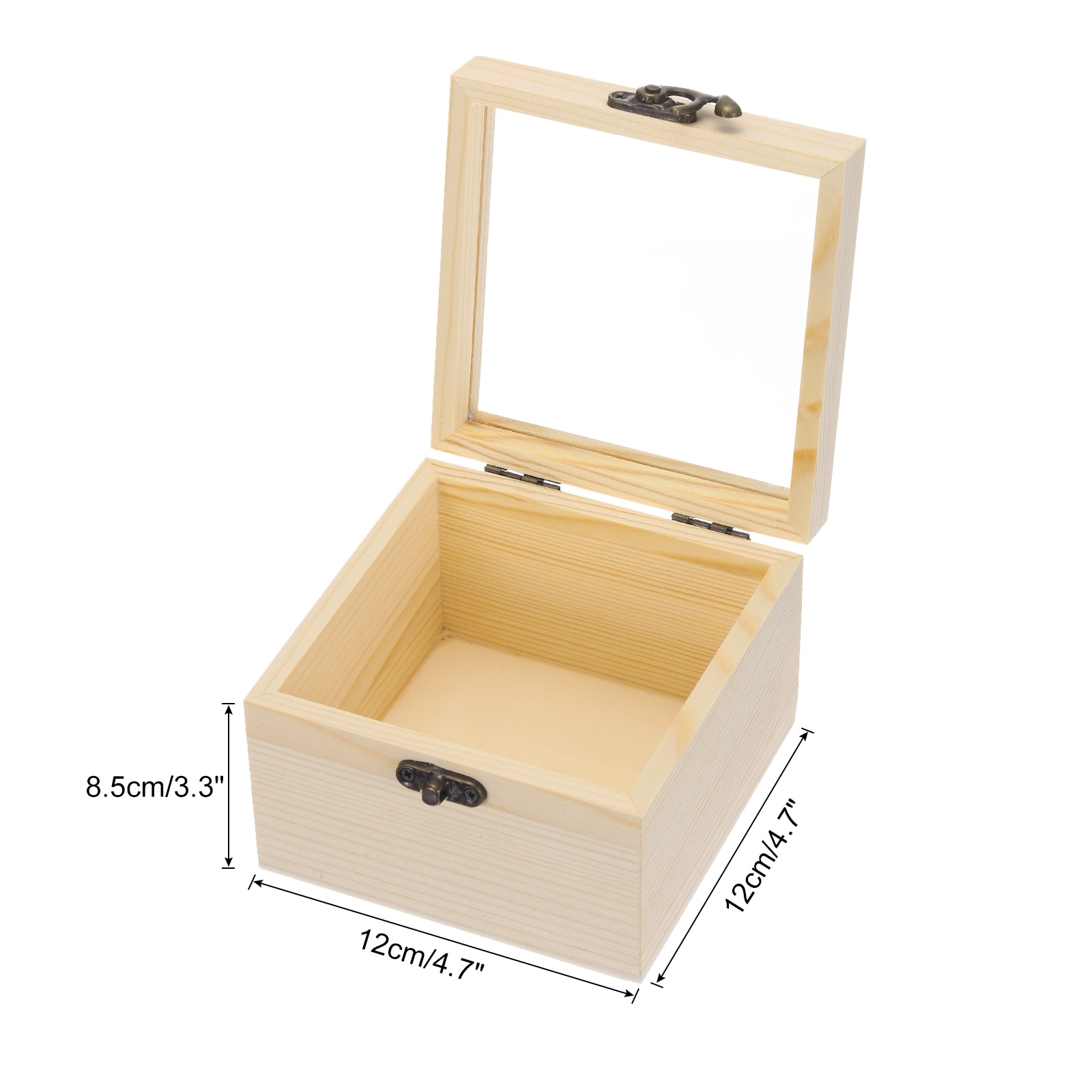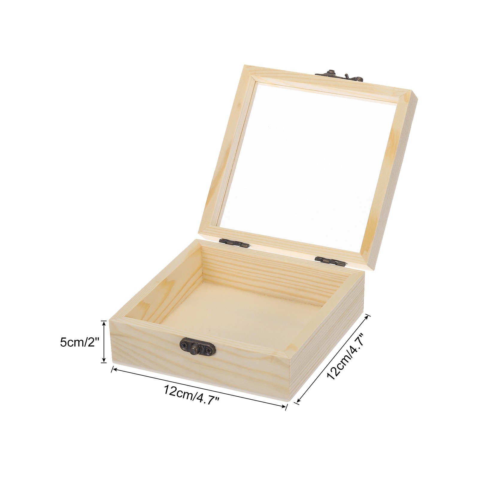 Unfinished Wooden Display Box,4.7"x4.7"x2" Storage Box with Glass Lid,Beige