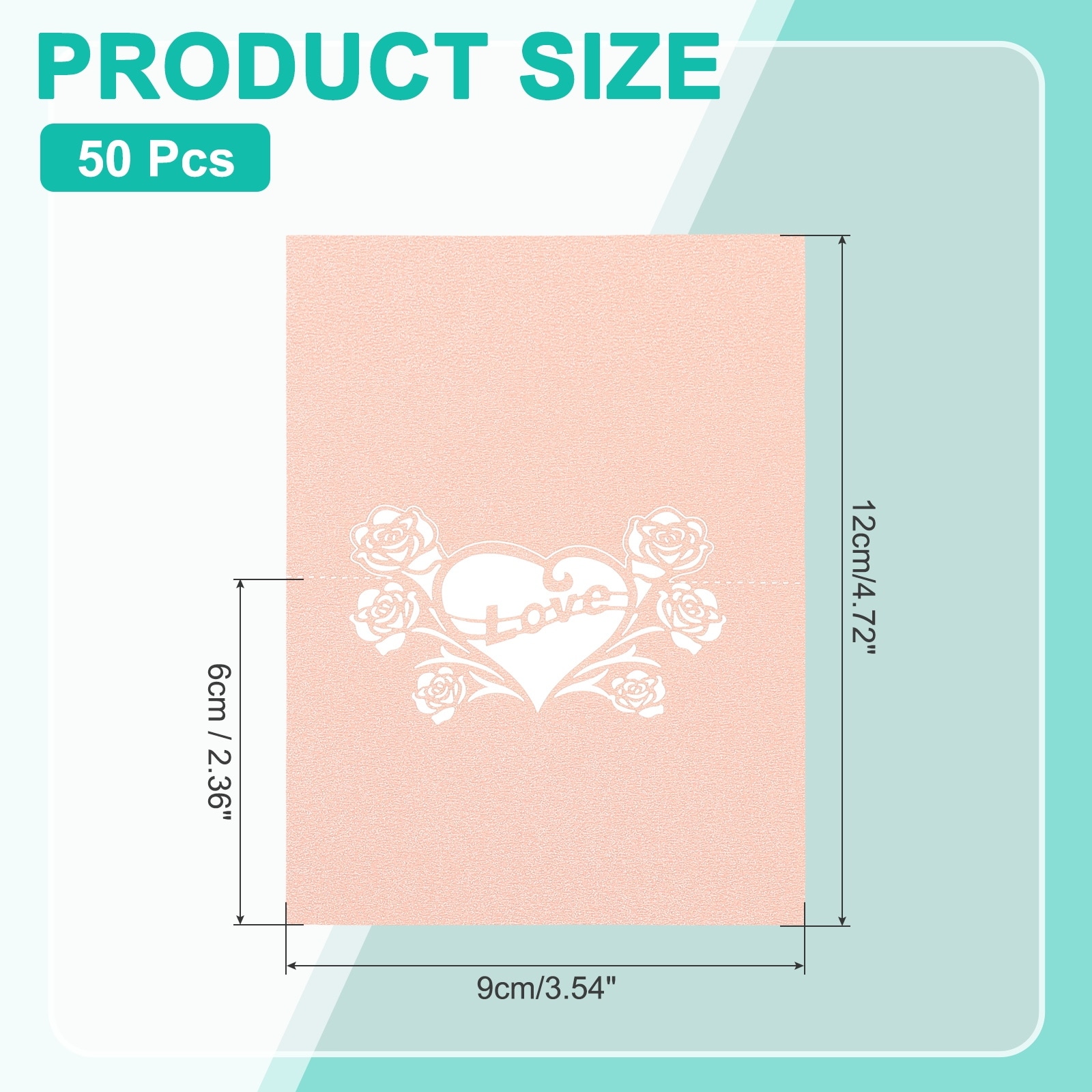 50Pcs Place Cards, Rose Love Heart Table Place Cards, White - 12x9cm