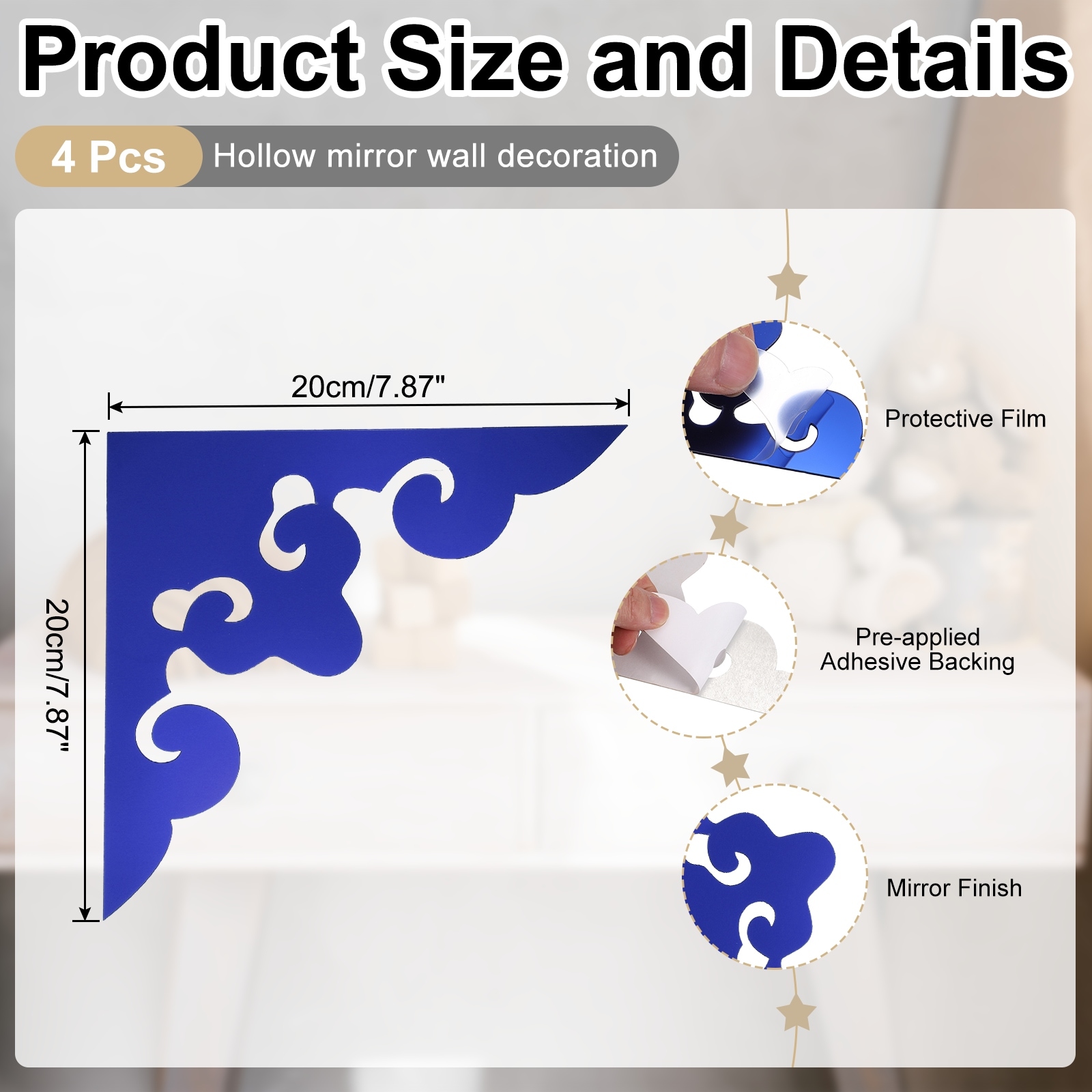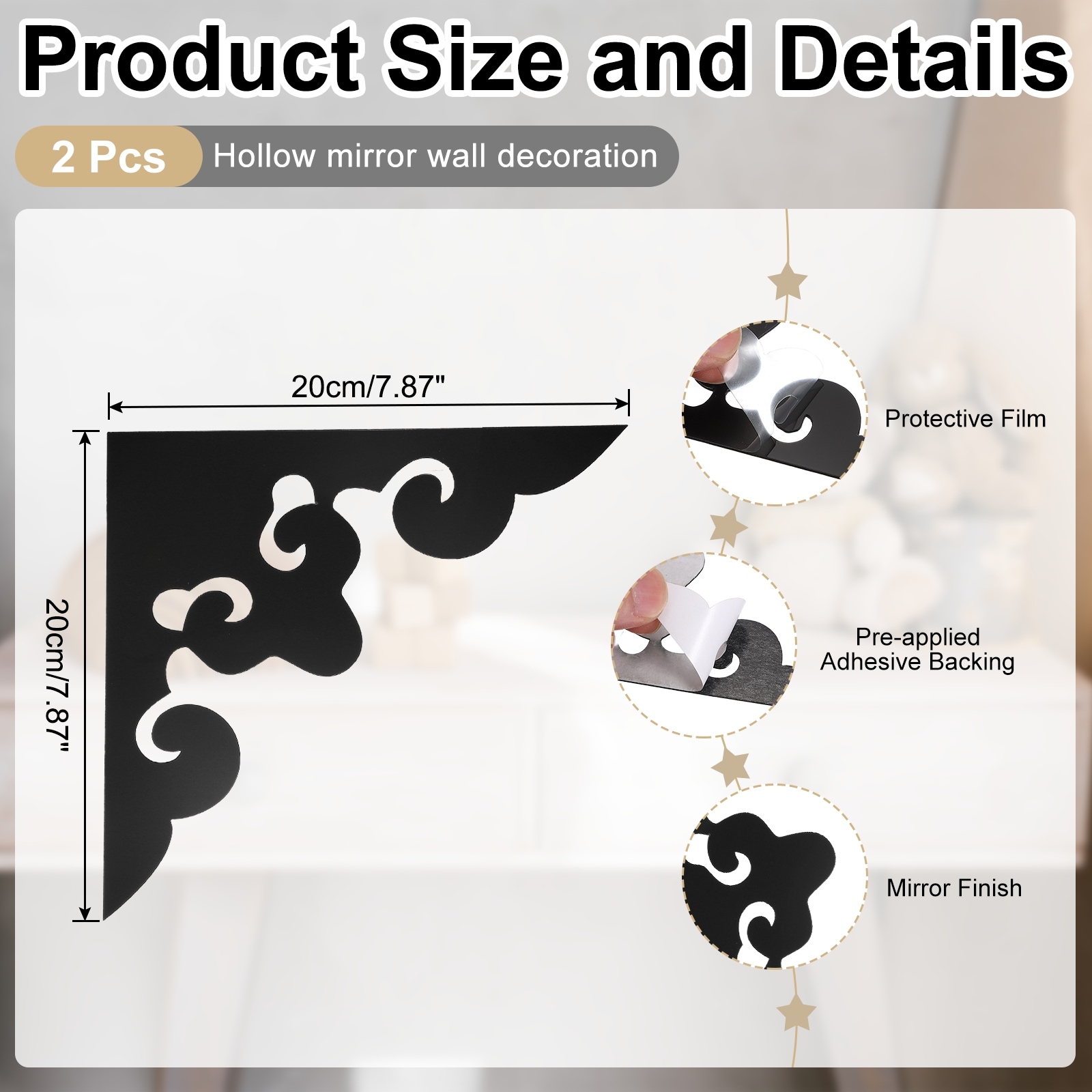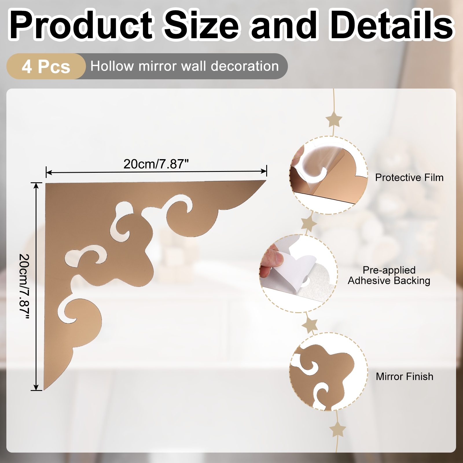 Hollow Mirror Wall Stickers, Acrylic Corner Decorative Pattern Decals Self Adhesive Mirror Stickers for Bathroom