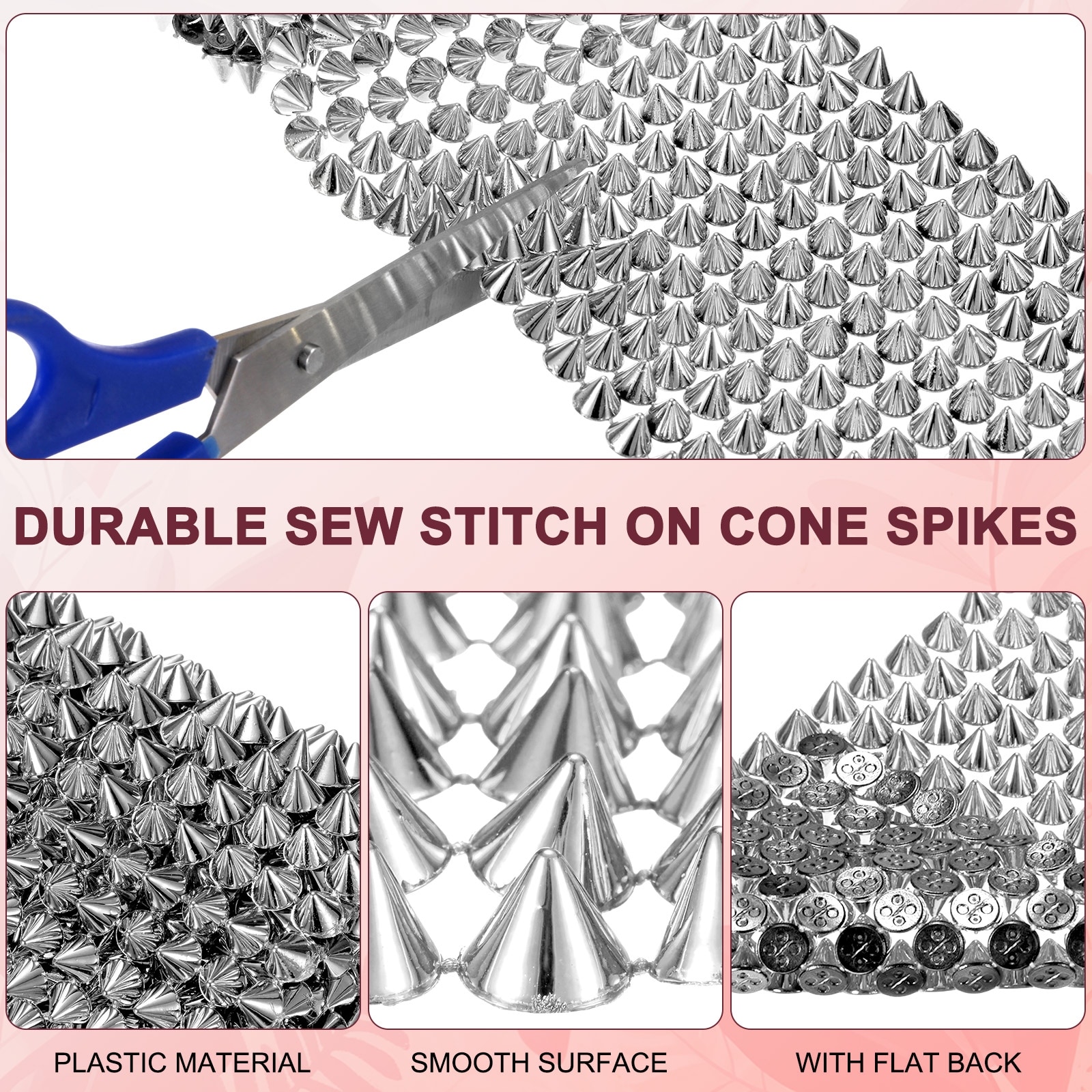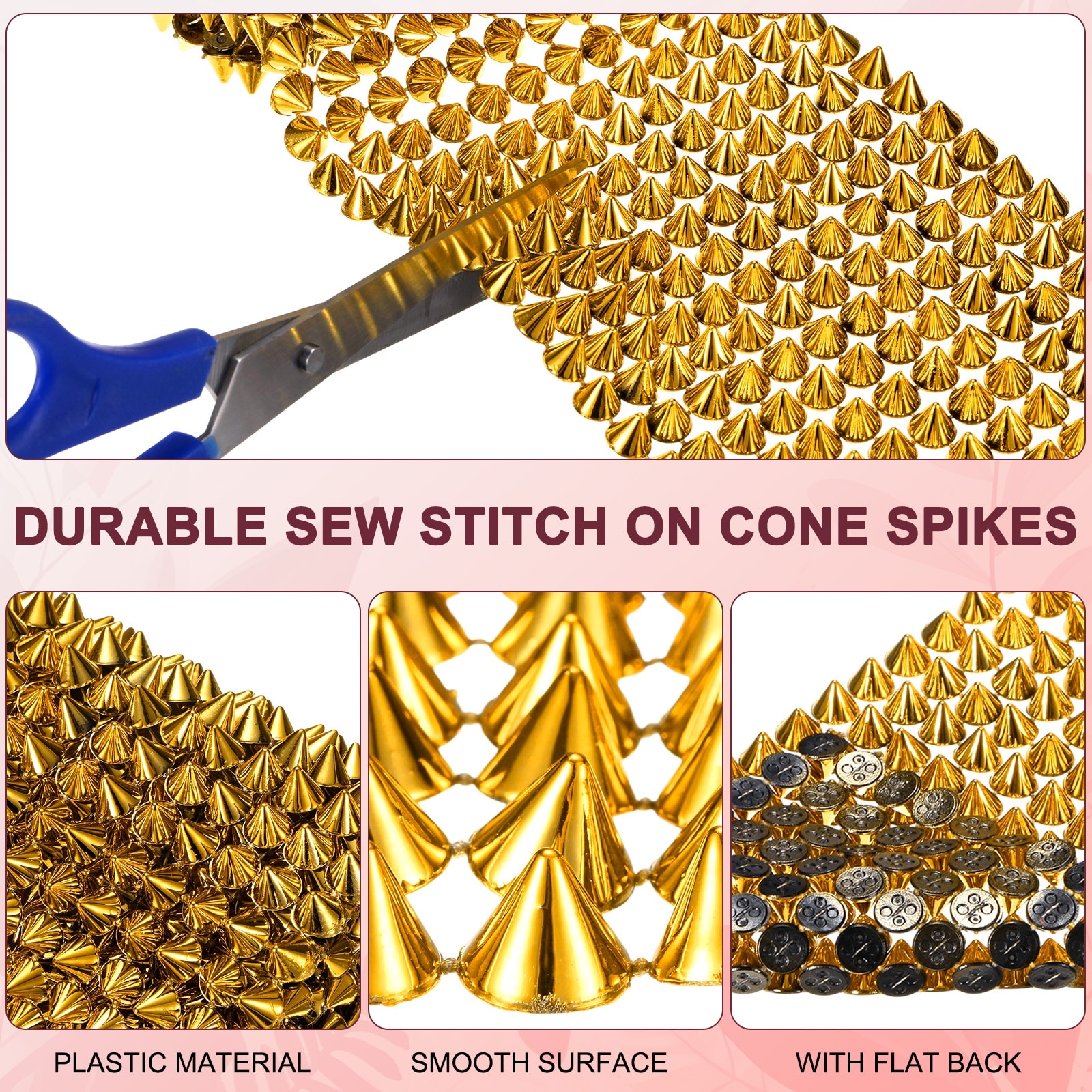 Sew Stitch on Spikes Stud Cone Rivet with Flat Back Punk Rock Trim Mesh Bead for DIY Crafts