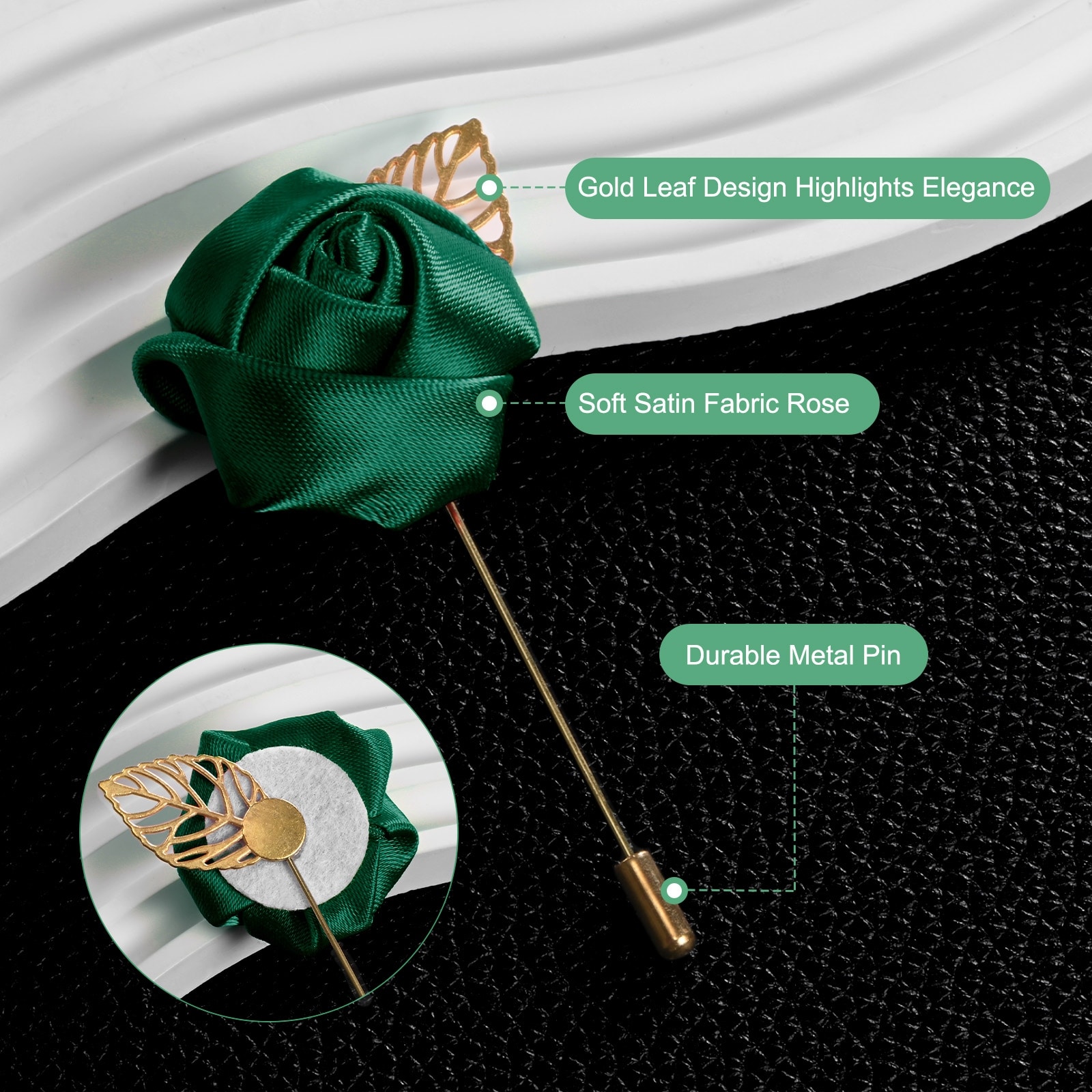 Flower Lapel Pins for Men, Leaf Rose Boutonnieres Pin Groom Boutonnieres for Wedding/Dance/Party - 9x5cm