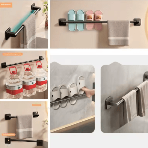 Wall Mounted Towel Rack With No Drill Installation black 40cm