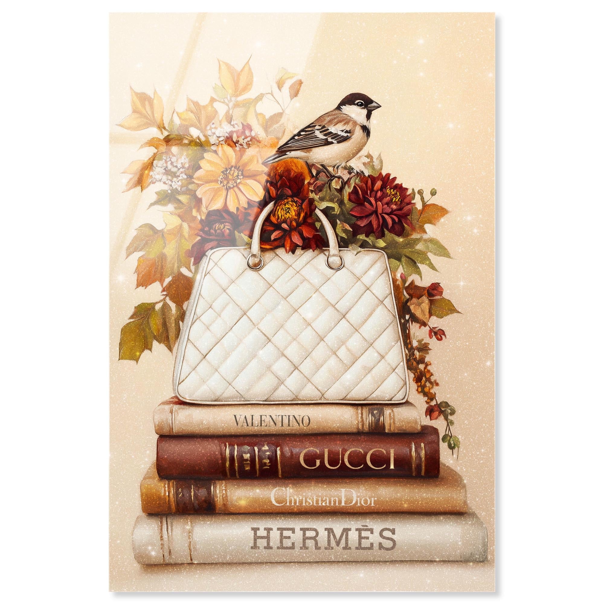 Little Bird Fall Flowers Glam Acrylic by Art Remedy, Ready to Hang