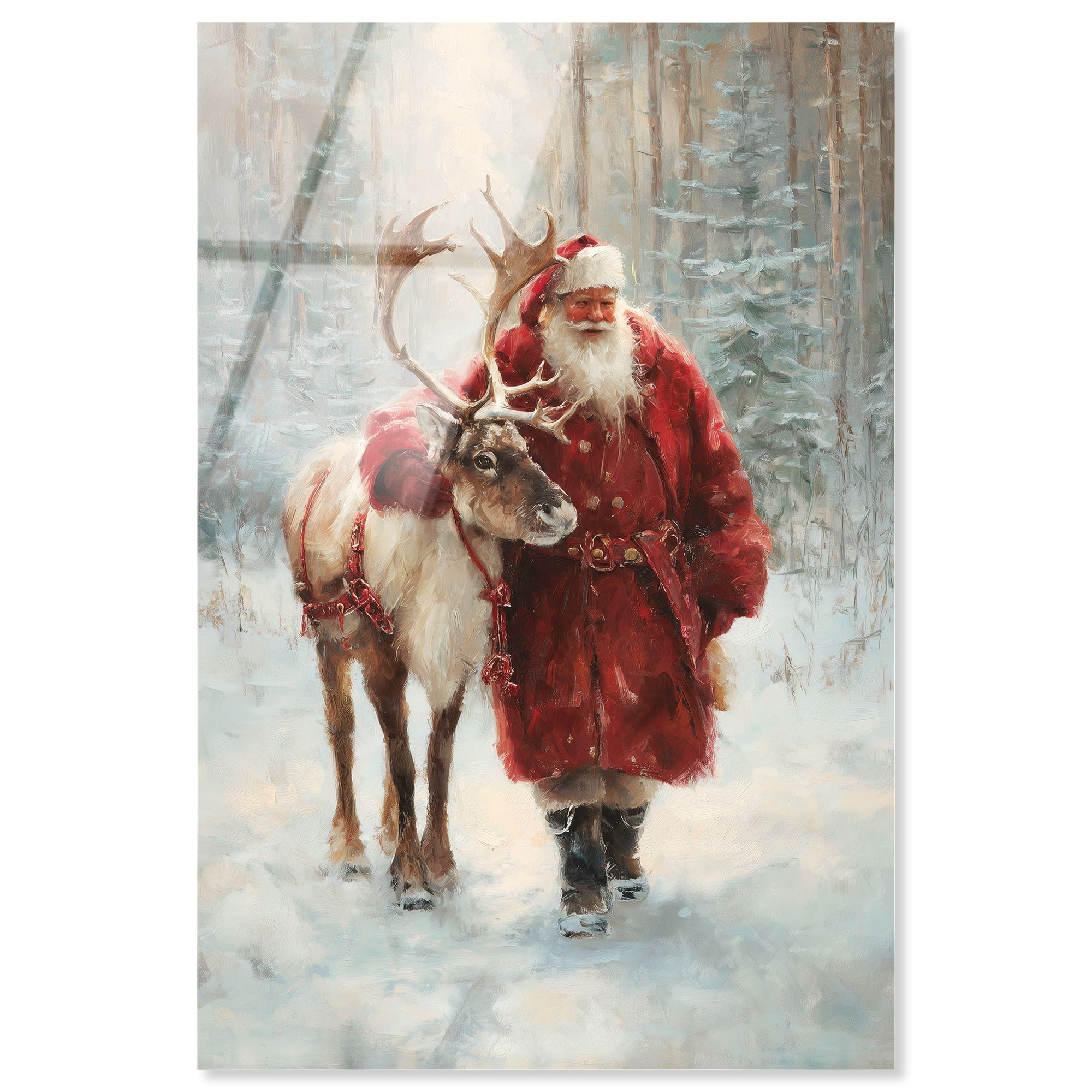 Santa and His Reindeer Christmas Decor Acrylic Print by Art Remedy