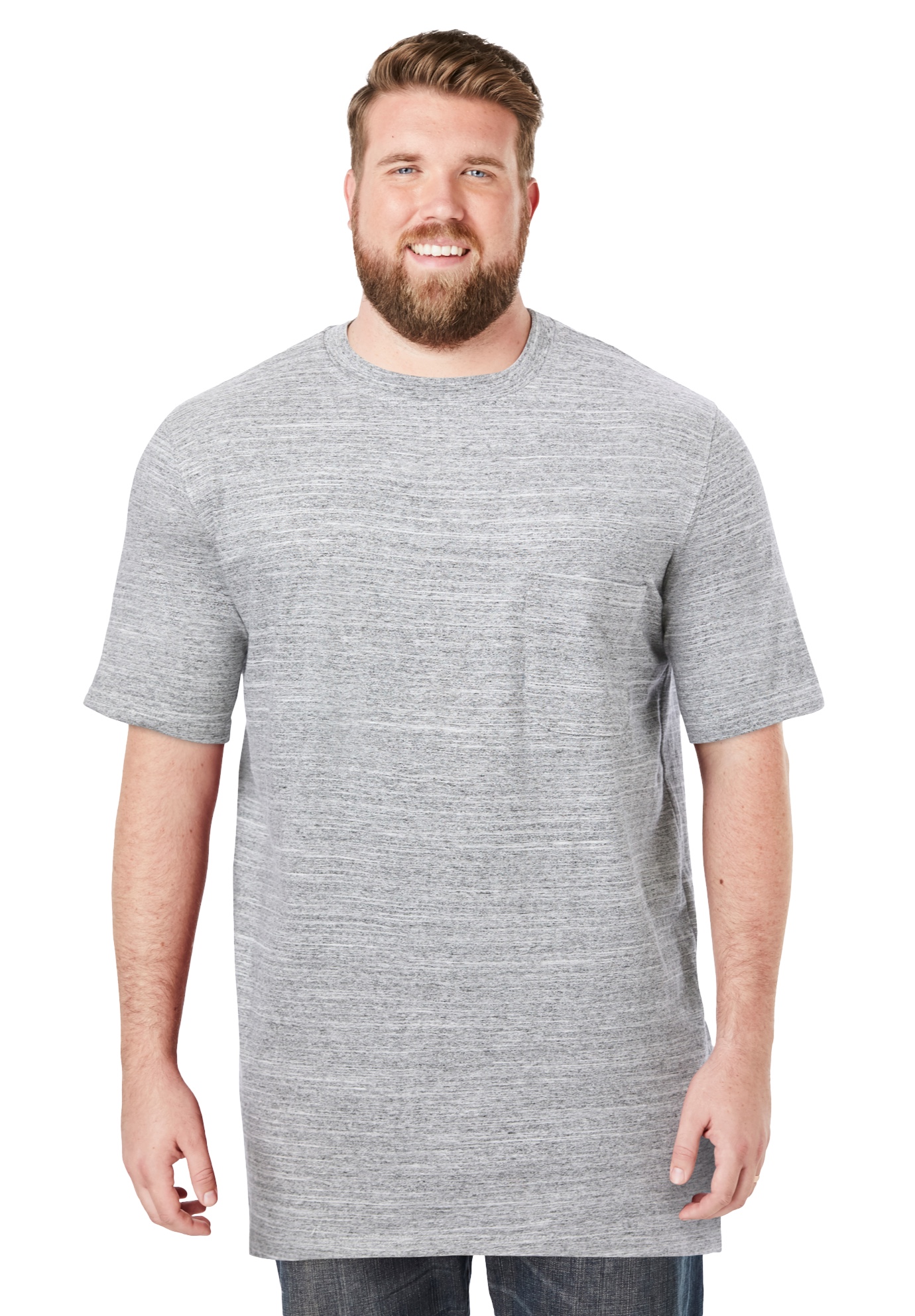Men's Big & Tall Heavyweight Longer-Length Pocket Crewneck T-Shirt by Boulder Creek in White Marl (Size XL)