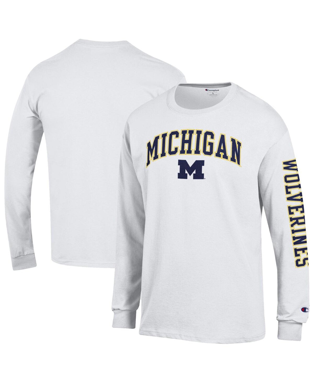 Champion Men's White Michigan Wolverines Arch Over Logo 2-Hit Long Sleeve T-Shirt - White