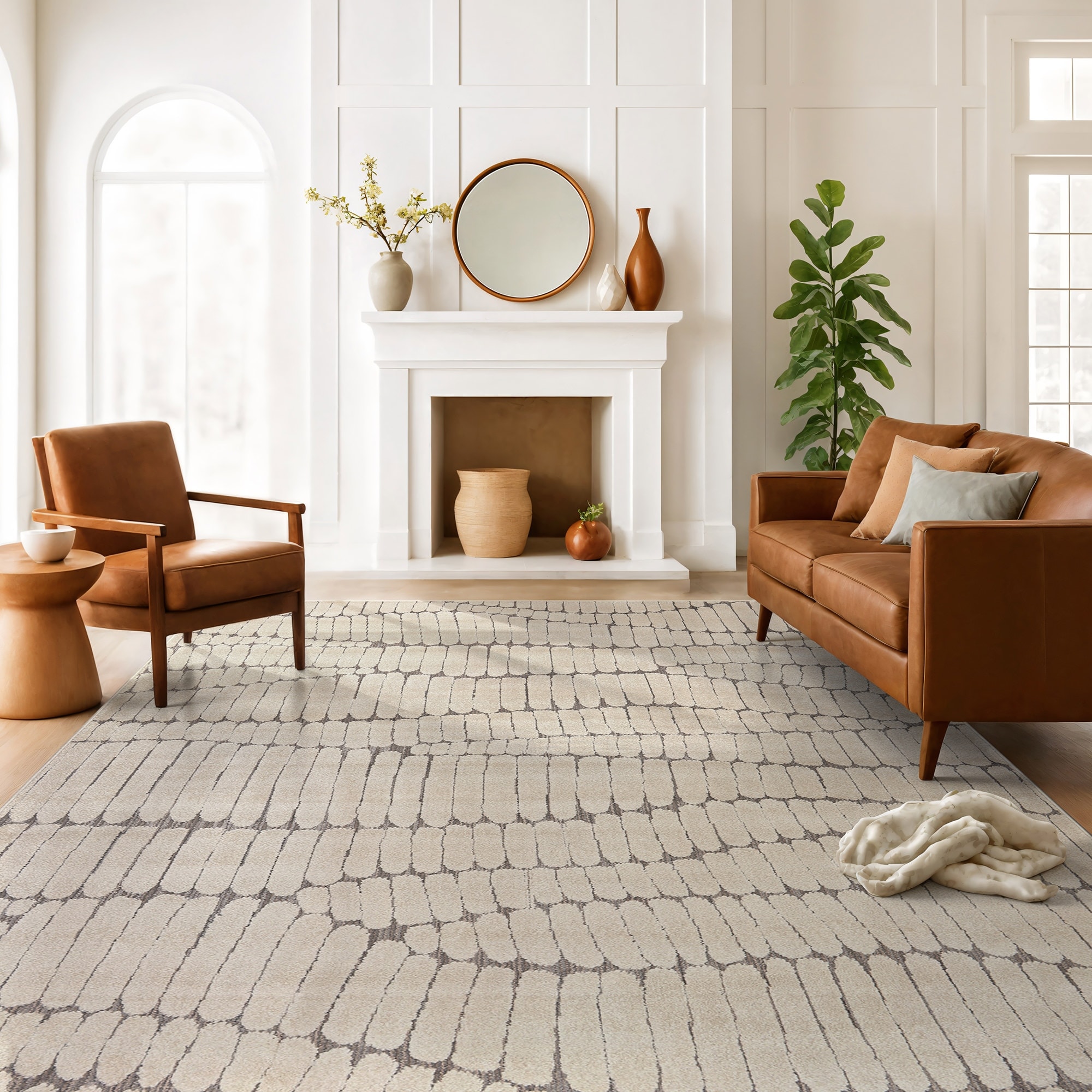 World Rug Gallery Pebble Texture Ivory Mist Cream Indoor High-Low Area Rug