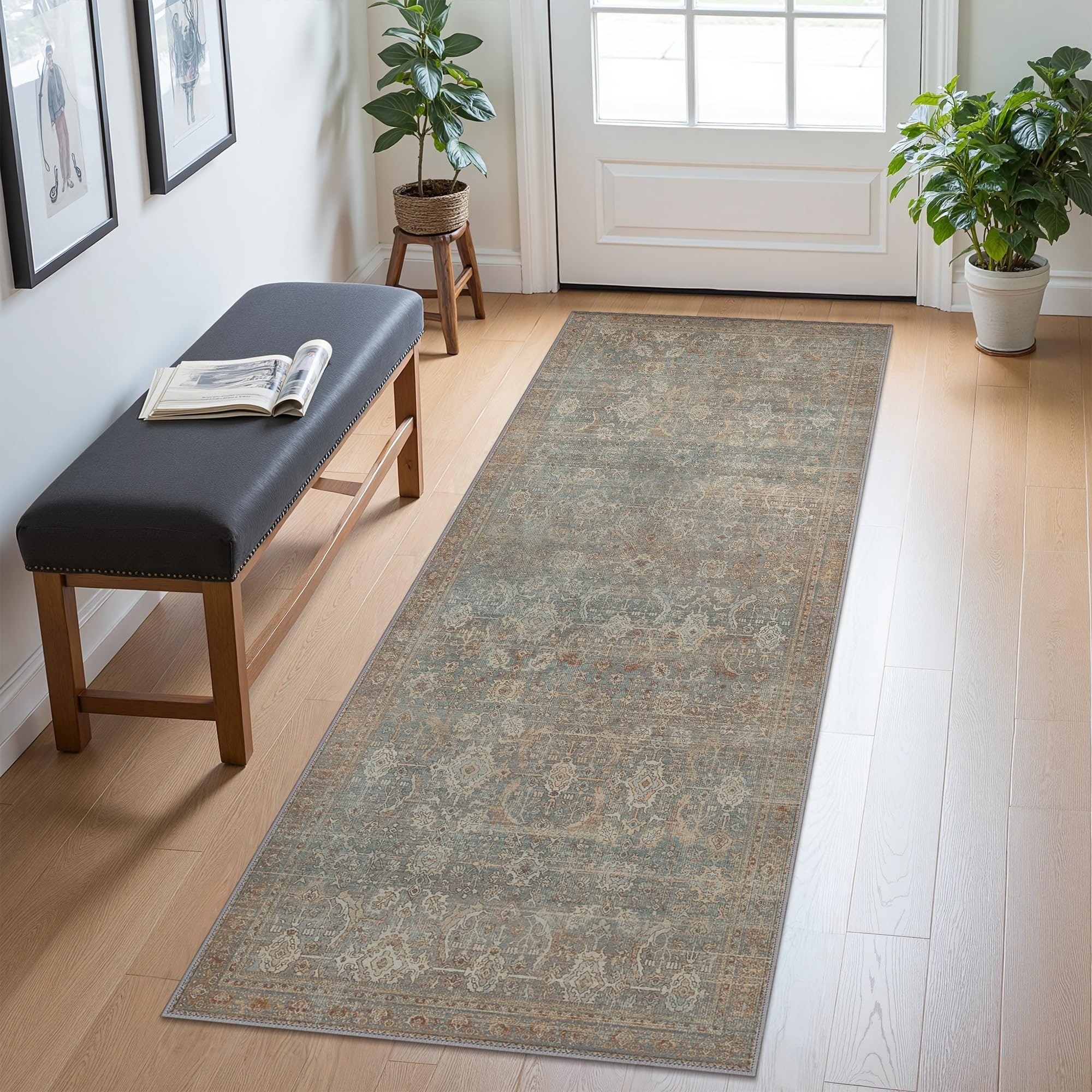 Mcow Vintage Floral Low-Pile Machine Washable Non-Slip Area Rug