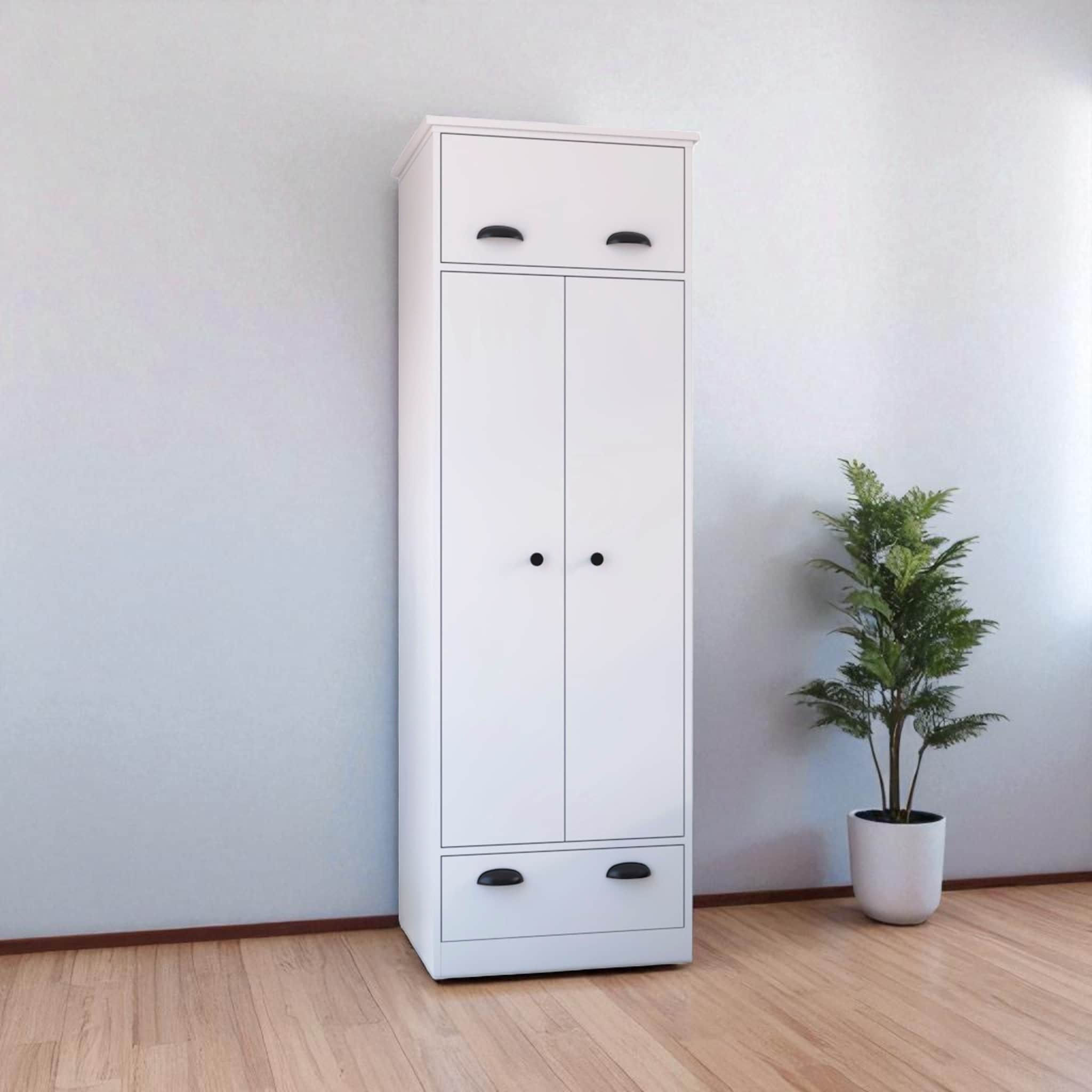 Armoire, Rod, Three Door Cabinet, Two Drawers, Two Superior Adjustable Shelves, Metal Hardware- White
