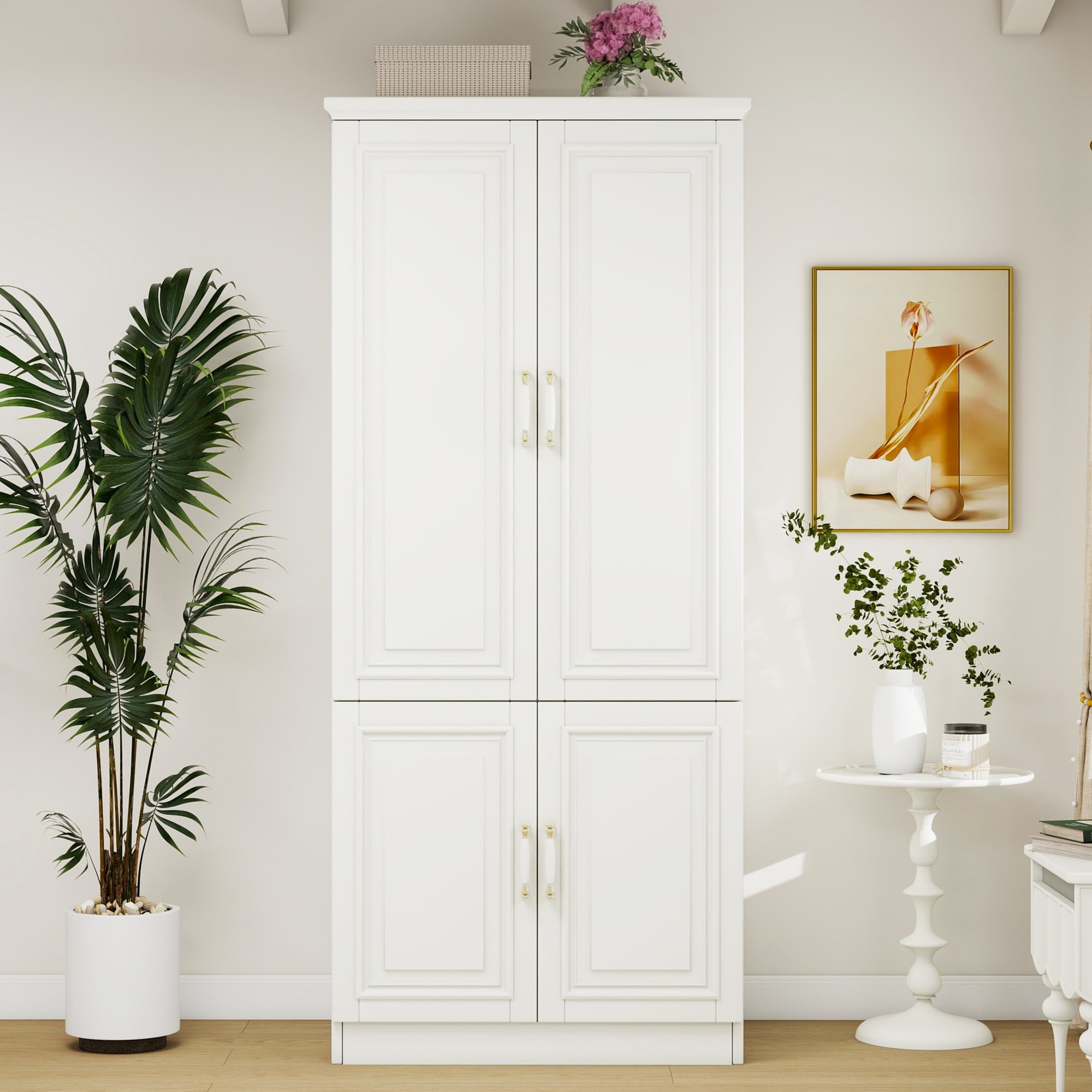 4-Door Armoire Closet with 2 Storage Drawers and Hanging Rods, Wooden Bedroom Wardrobe Clothes Organizer with Storage Shelves