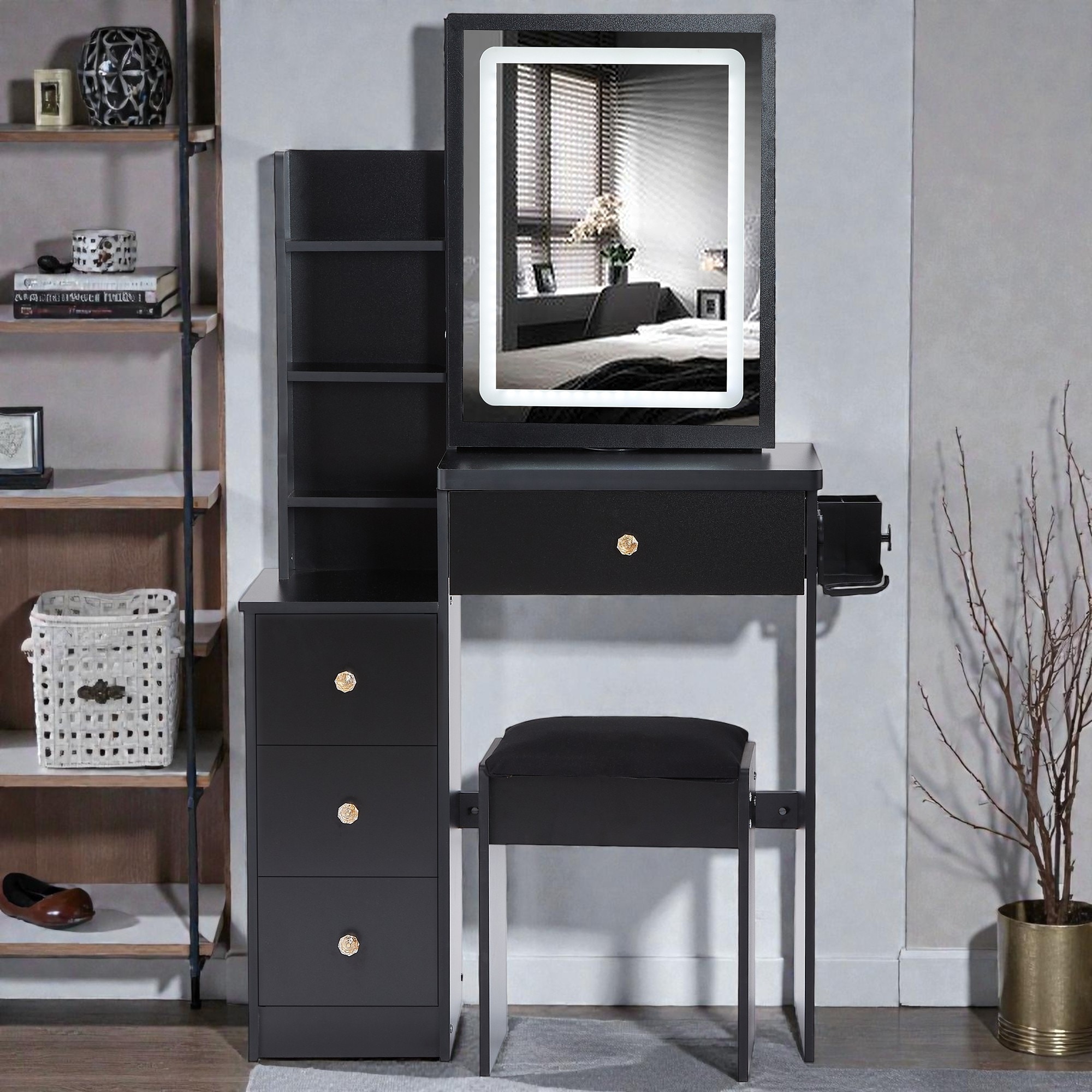 Makeup Vanity Desk w/3 Modes Adjustable Lighted Mirror,Dress Table Set
