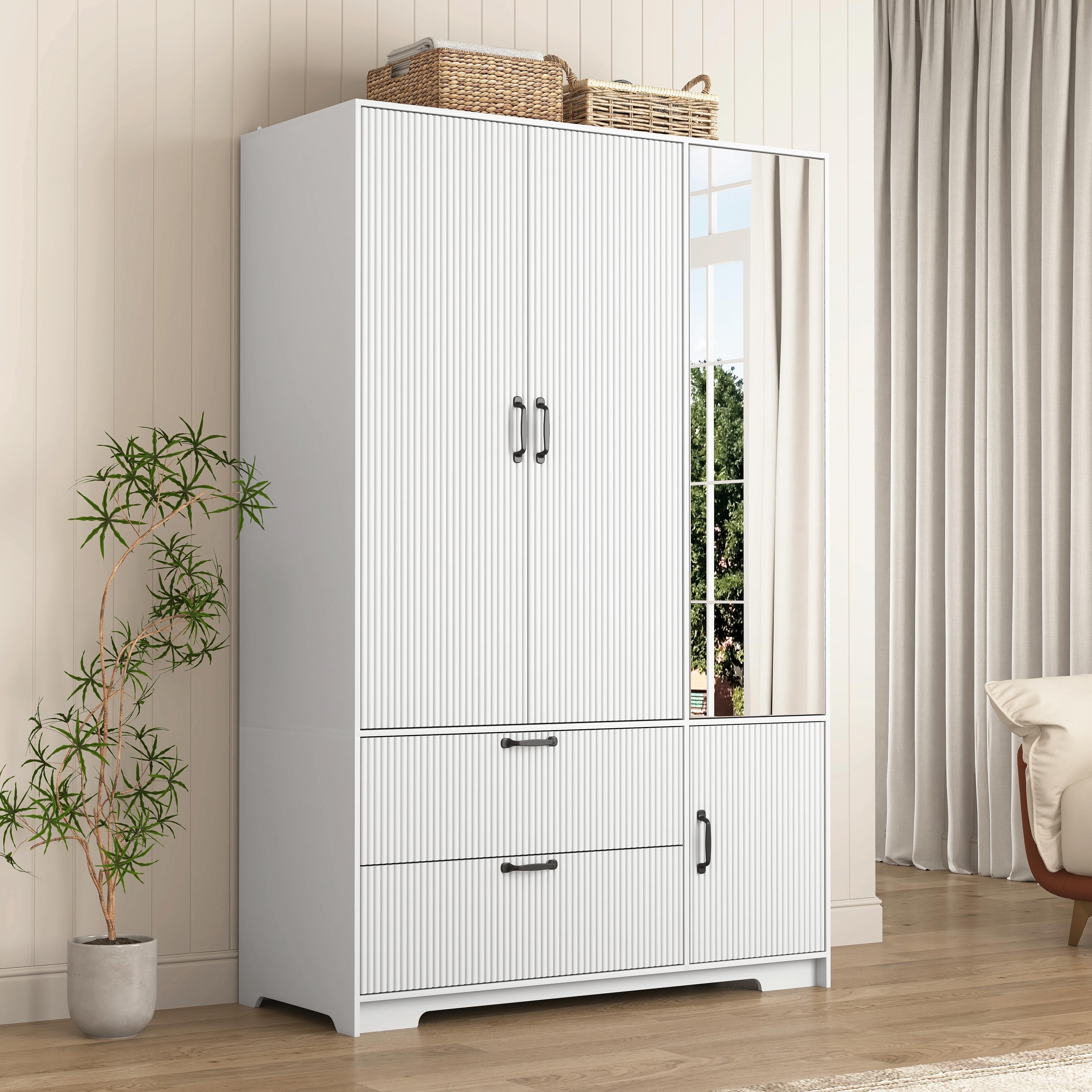 Gyomojoy Large White Wardrobe Closet with Drawers & Doors, Modular Armoire with Hanging Rods, Apartment & Dorm Storage
