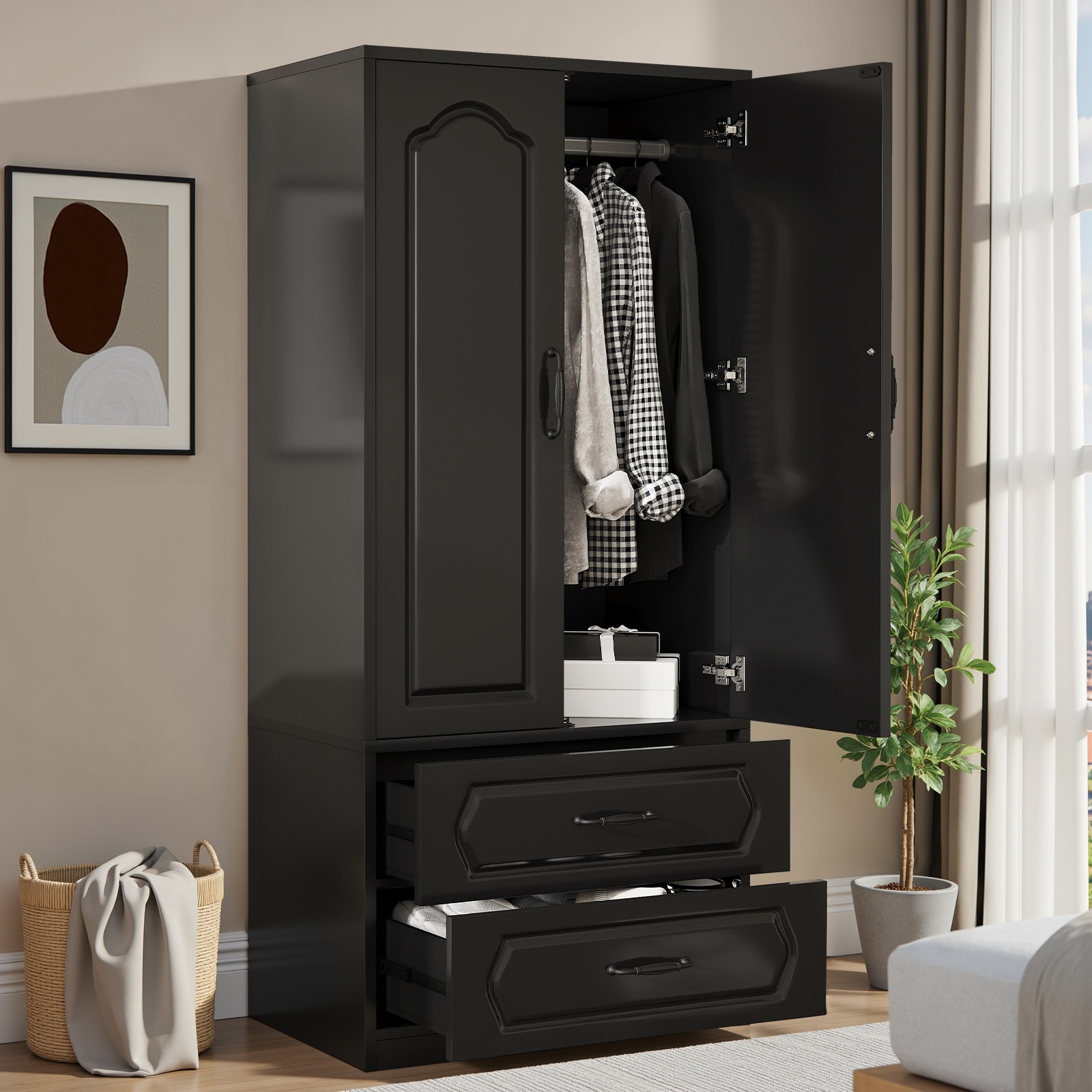 Pocassy 68.9" H Wardrobe Closet with 2 Doors and 2 Drawers