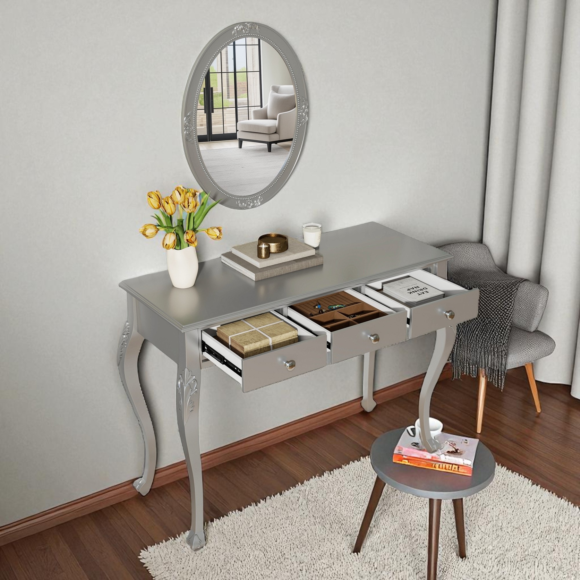 Luxury Oval Mirror Makeup Vanity Desk with 3 Drawers, Elegant Dressing Table Console for Bedroom, Entryway,Living Room
