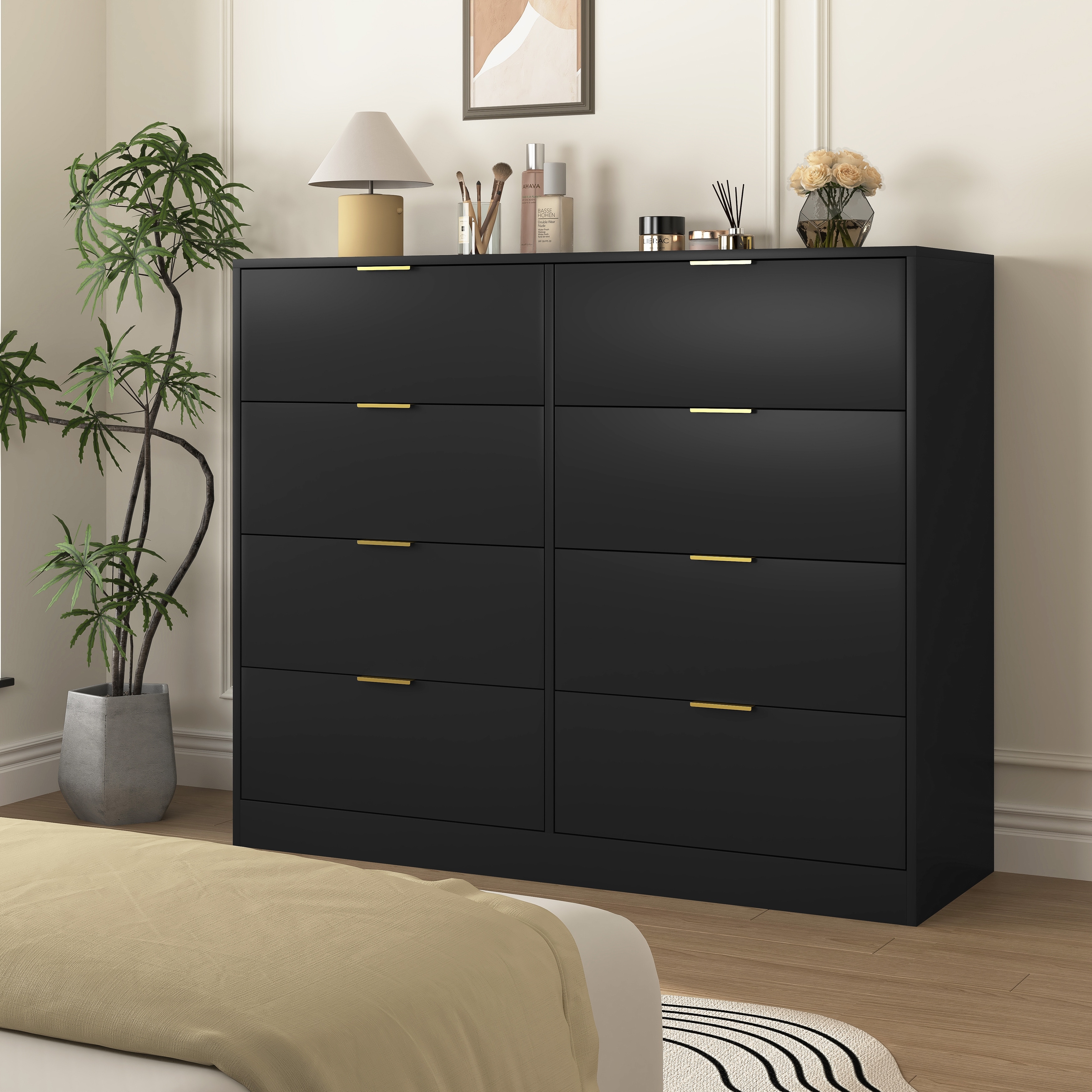 8 Drawers Dresser Chest of Drawer for Bedroom, Black Dressers Organizer Rustic Wardrobe Armoire Closet
