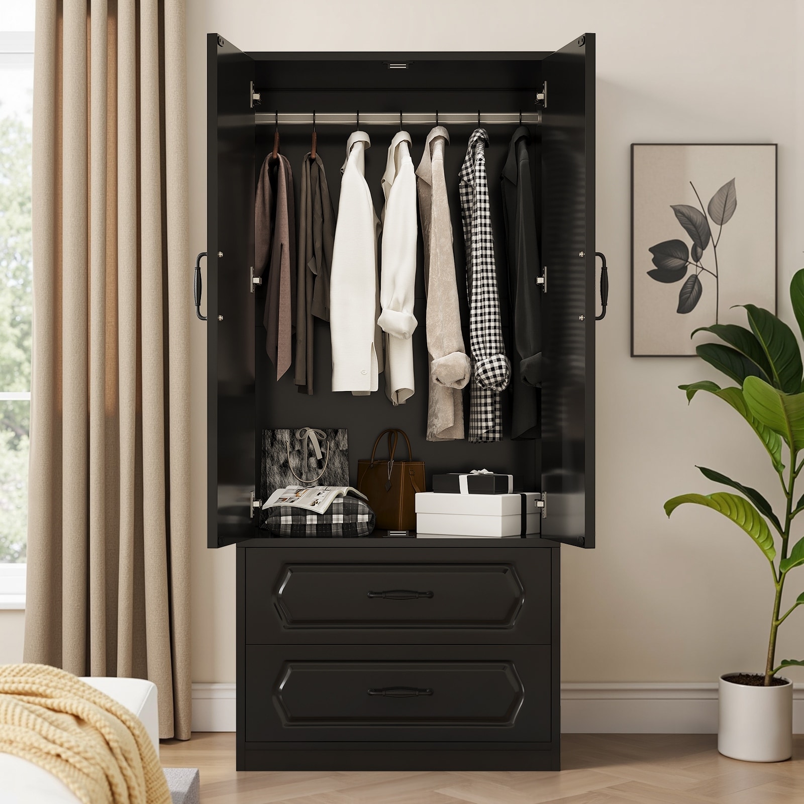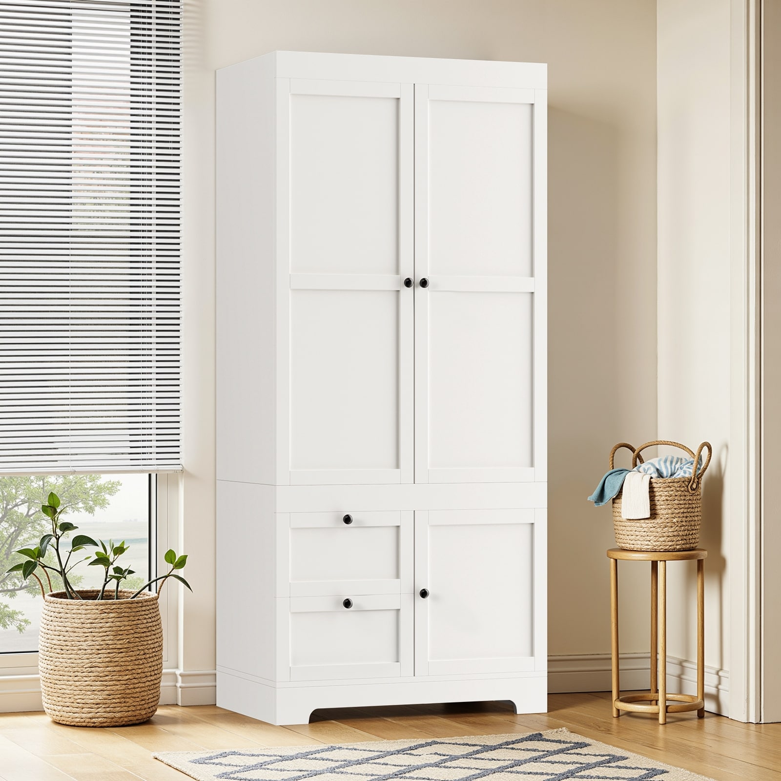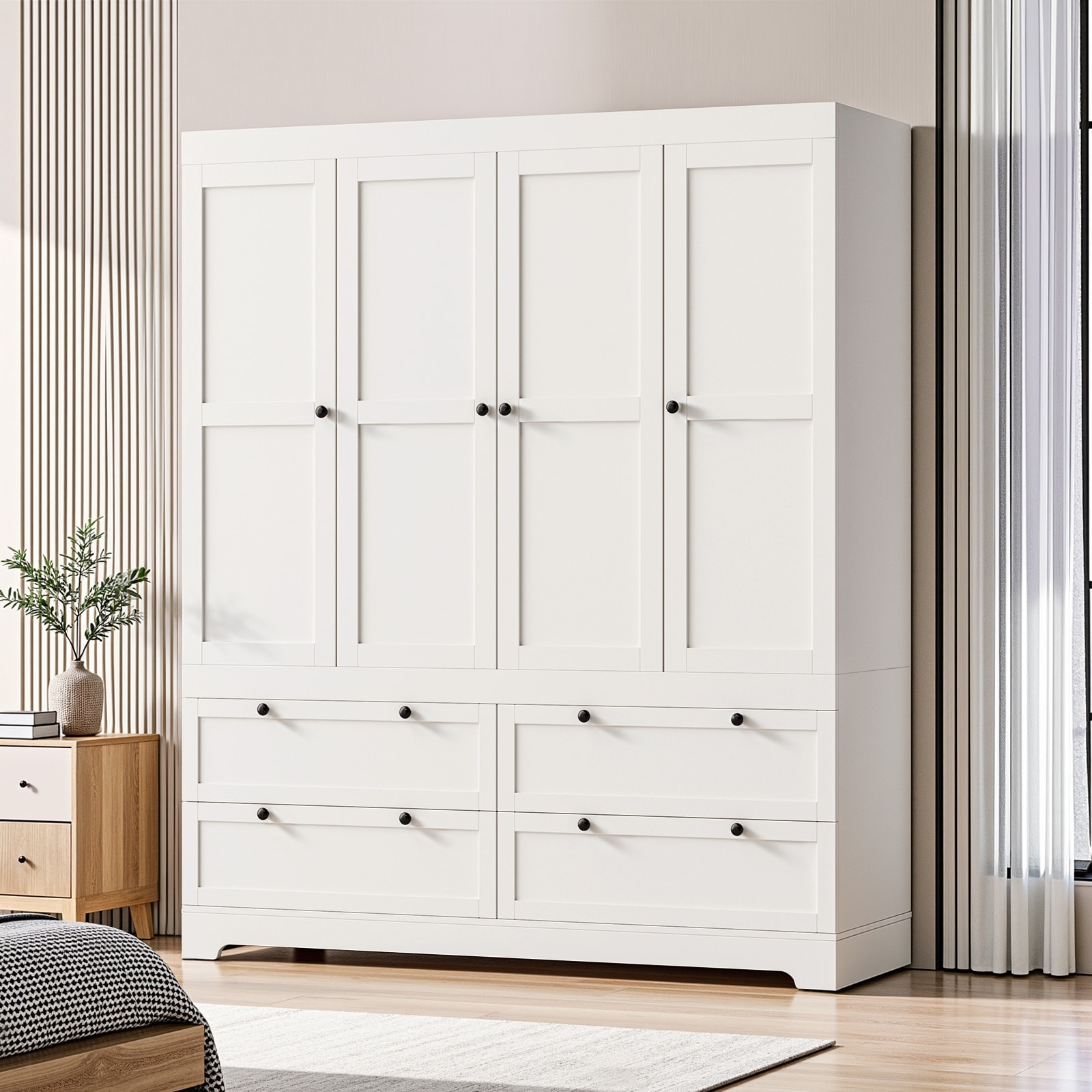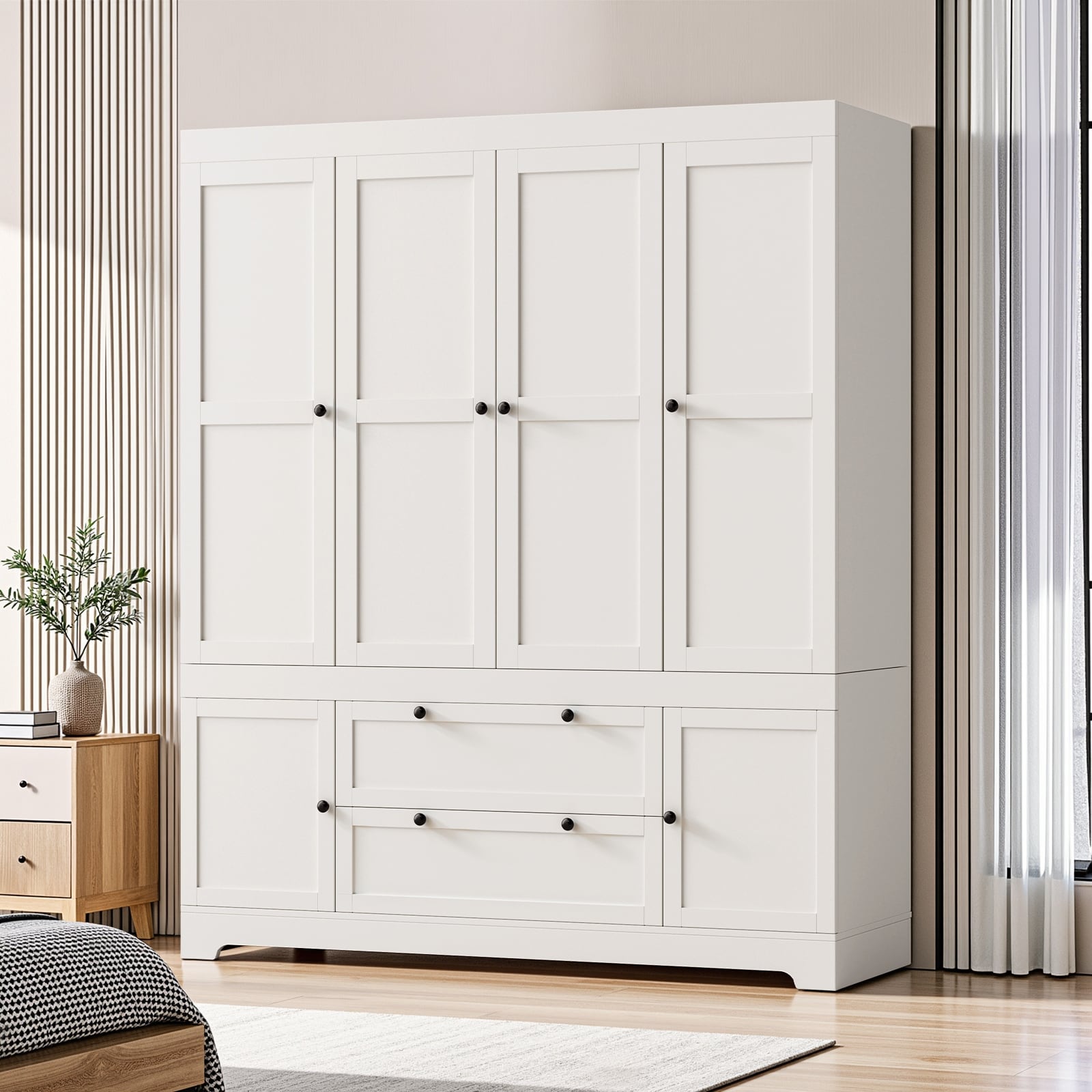 Pocassy 71" H Wardrobe Closet with Drawers and Cabinet.