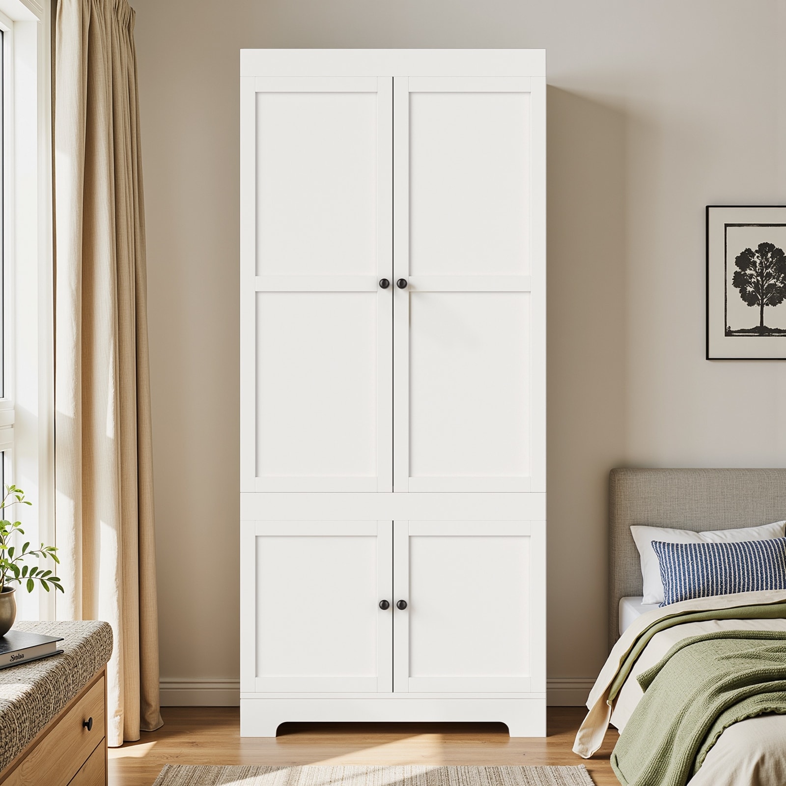 4-Door Wardrobe Closet with Full-Length Mirror, Hanging Rods, Drawer, Shoe Storage Door, Anti-Tip Safety, 58.9'' Wide