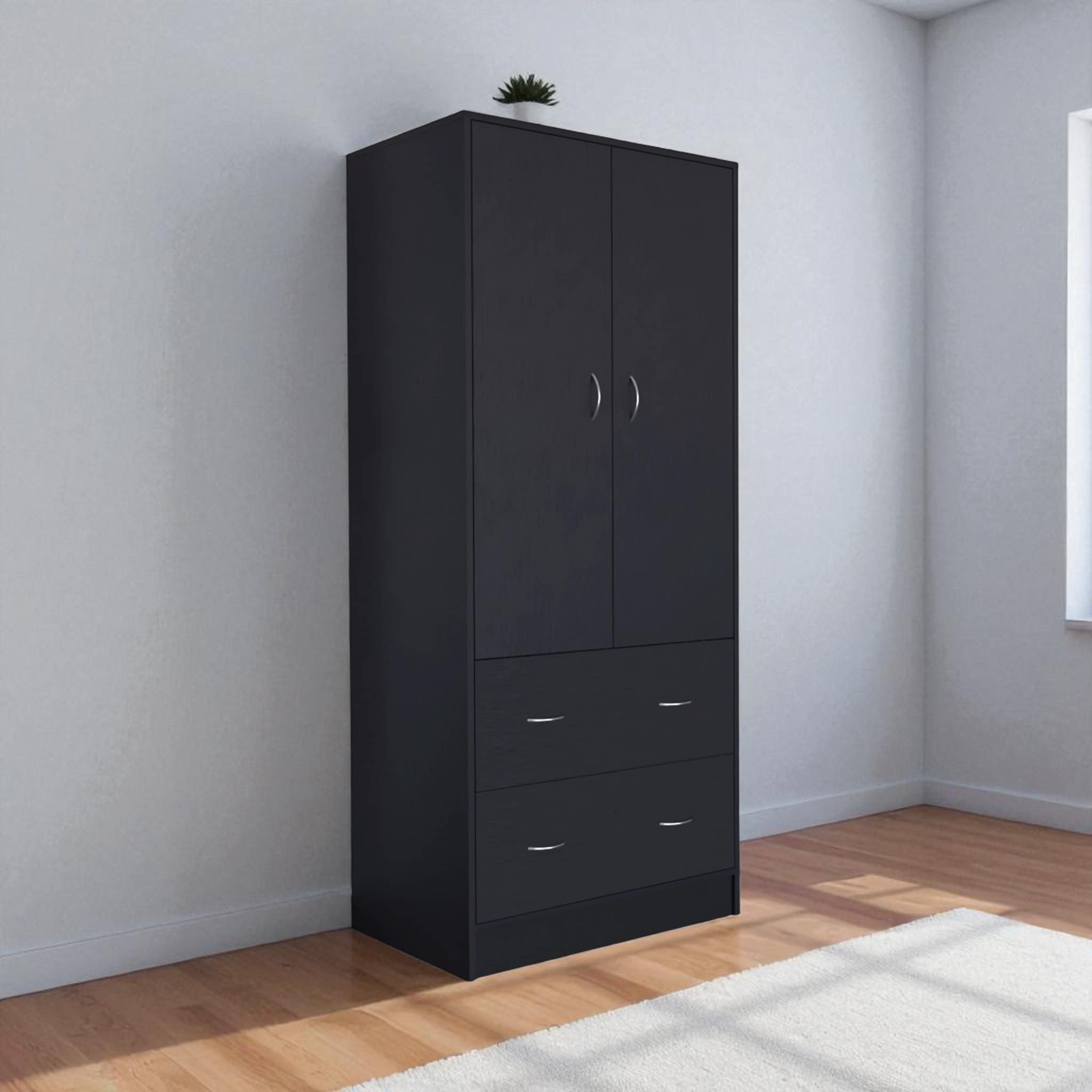 2-Door Freestanding Armoire Wardrobe with Hanging Rod and 2 Drawers, Compact Bedroom Closet Storage Cabinet - Particle Board