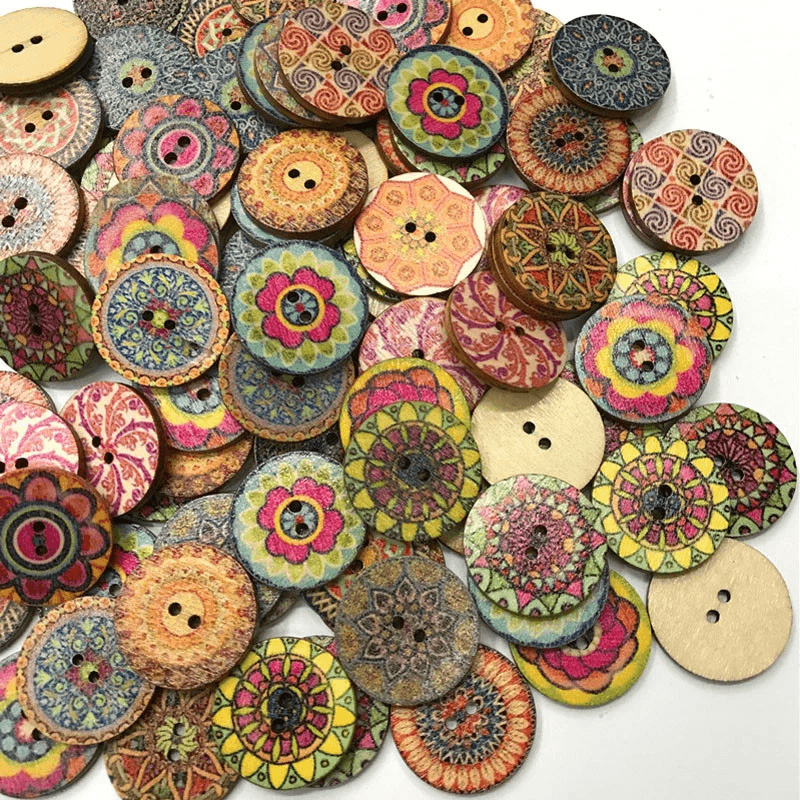 Mixed Boho Flower Wooden Button, DIY Craft Sewing Scrapbooking 25mm