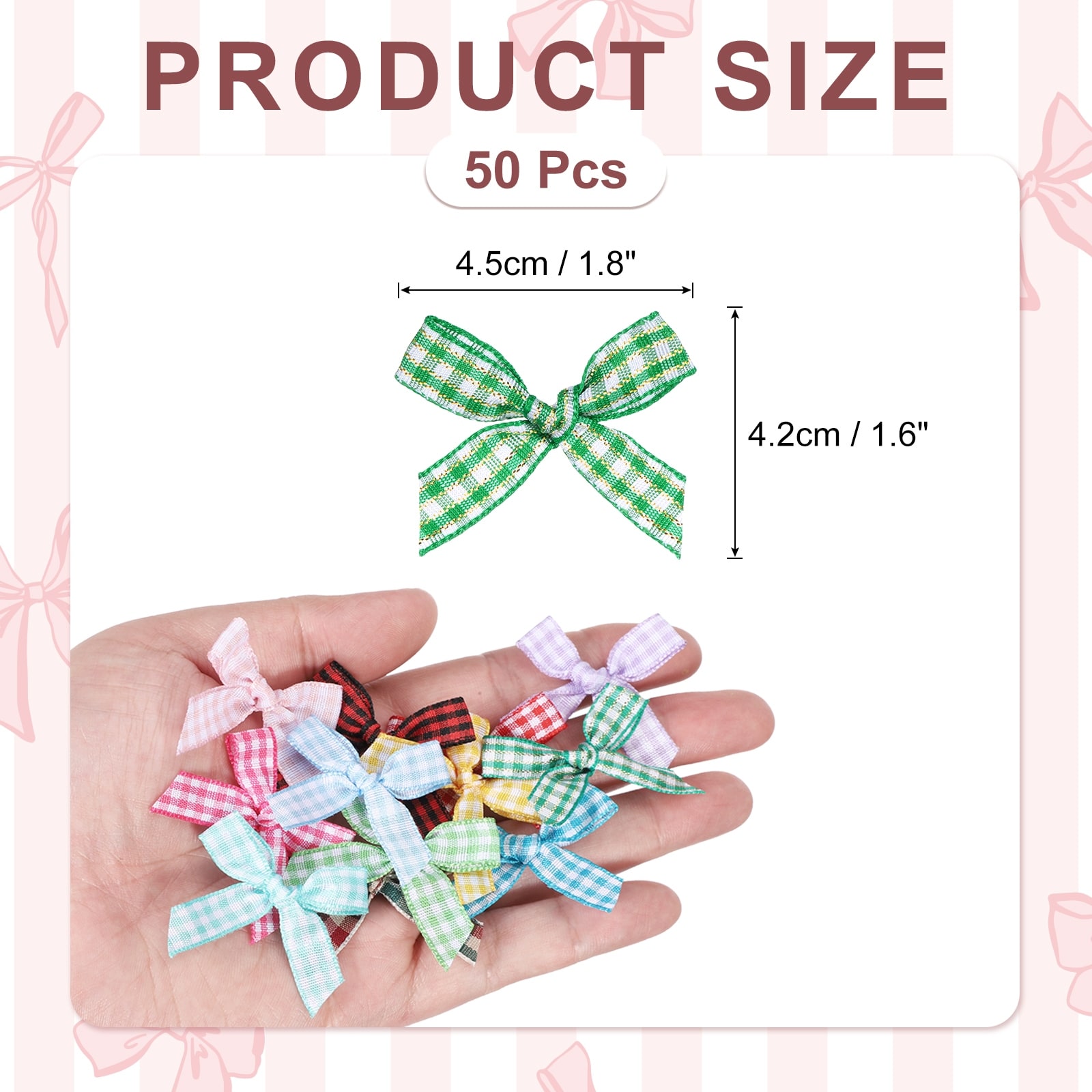 Mini Gingham Ribbon Bows Checkered Plaid Bow Fabric Satin for Craft DIY Cake Sewing Wedding Birthday Party - 1.8 Inch