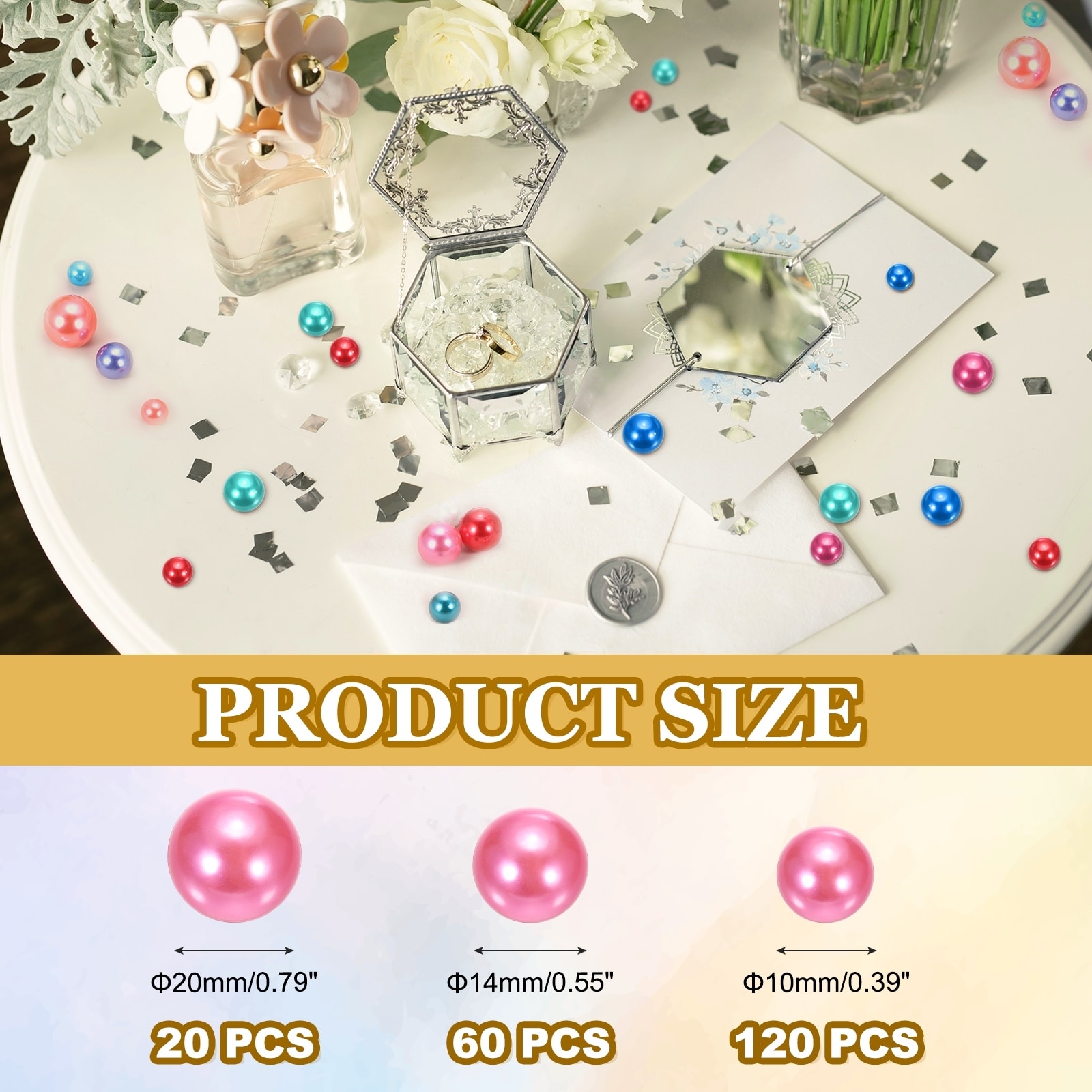 200 Pcs Pearl Bead for Vase Filler, 20/14/10mm Floating Beads(Black Yellow)