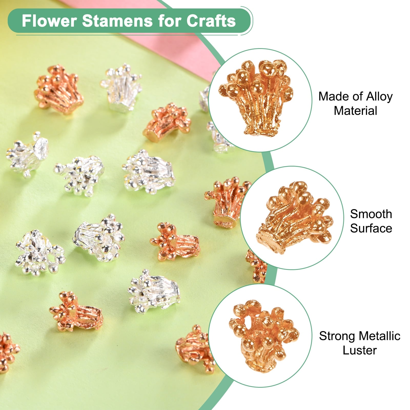 Flower Pistil Metal Alloy Flower Blossom Connectors Charm Metal Material Bead Caps Accessory for Crafts - 200 Pcs