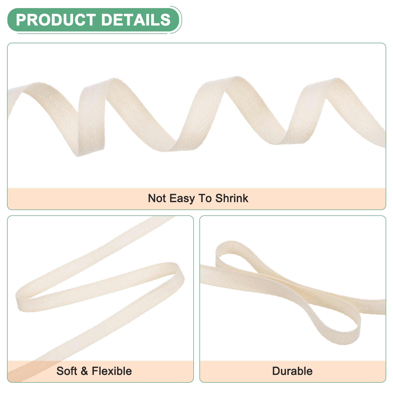 Cotton Twill Tape, for Sewing/Gift Wrapping/DIY - 3/8inch 49 Yards