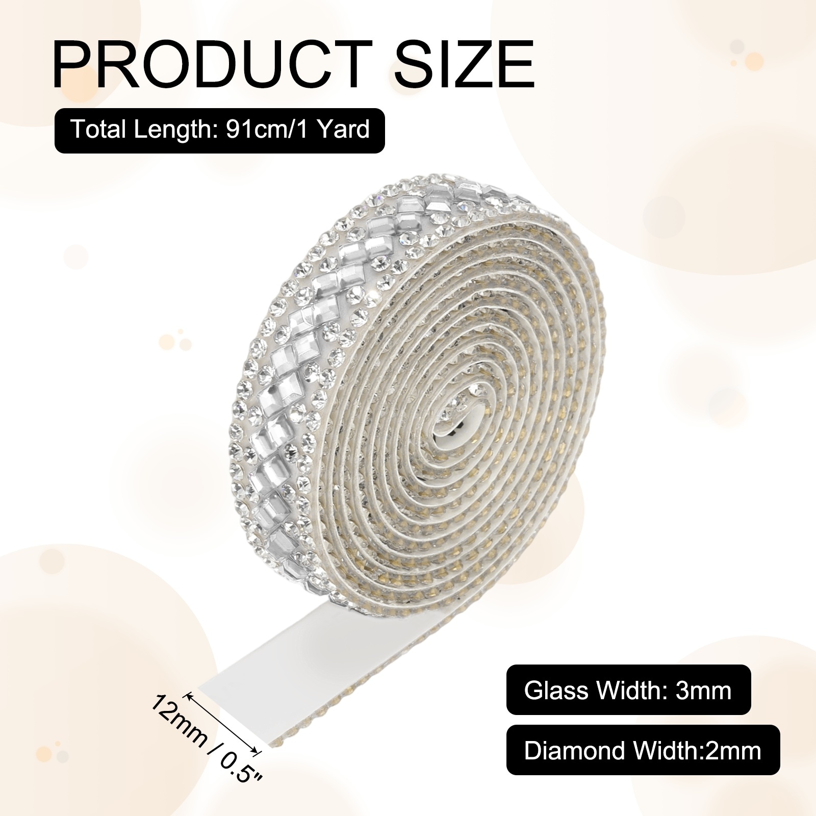 3 Roll 1 Yard 12mm Self Adhesive Crystal Ribbon