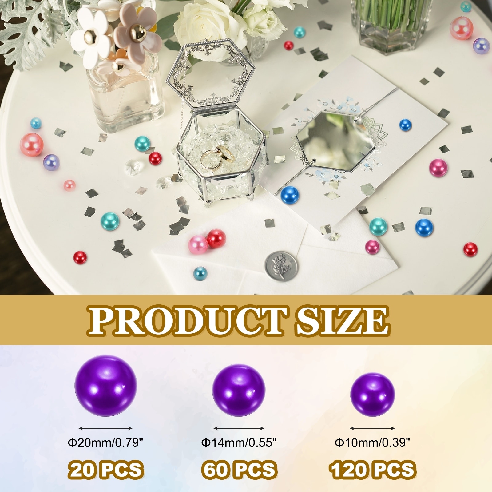 200 Pcs Pearl Bead for Vase Filler, 20/14/10mm Floating Beads(Black Yellow)