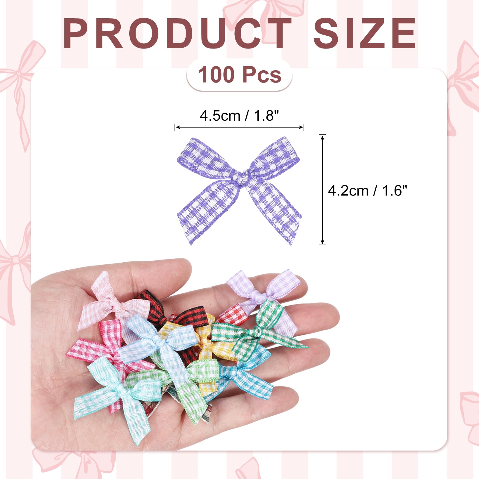 Mini Gingham Ribbon Bows Checkered Plaid Bow Fabric Satin for Craft DIY Cake Sewing Wedding Birthday - 1.8 Inch