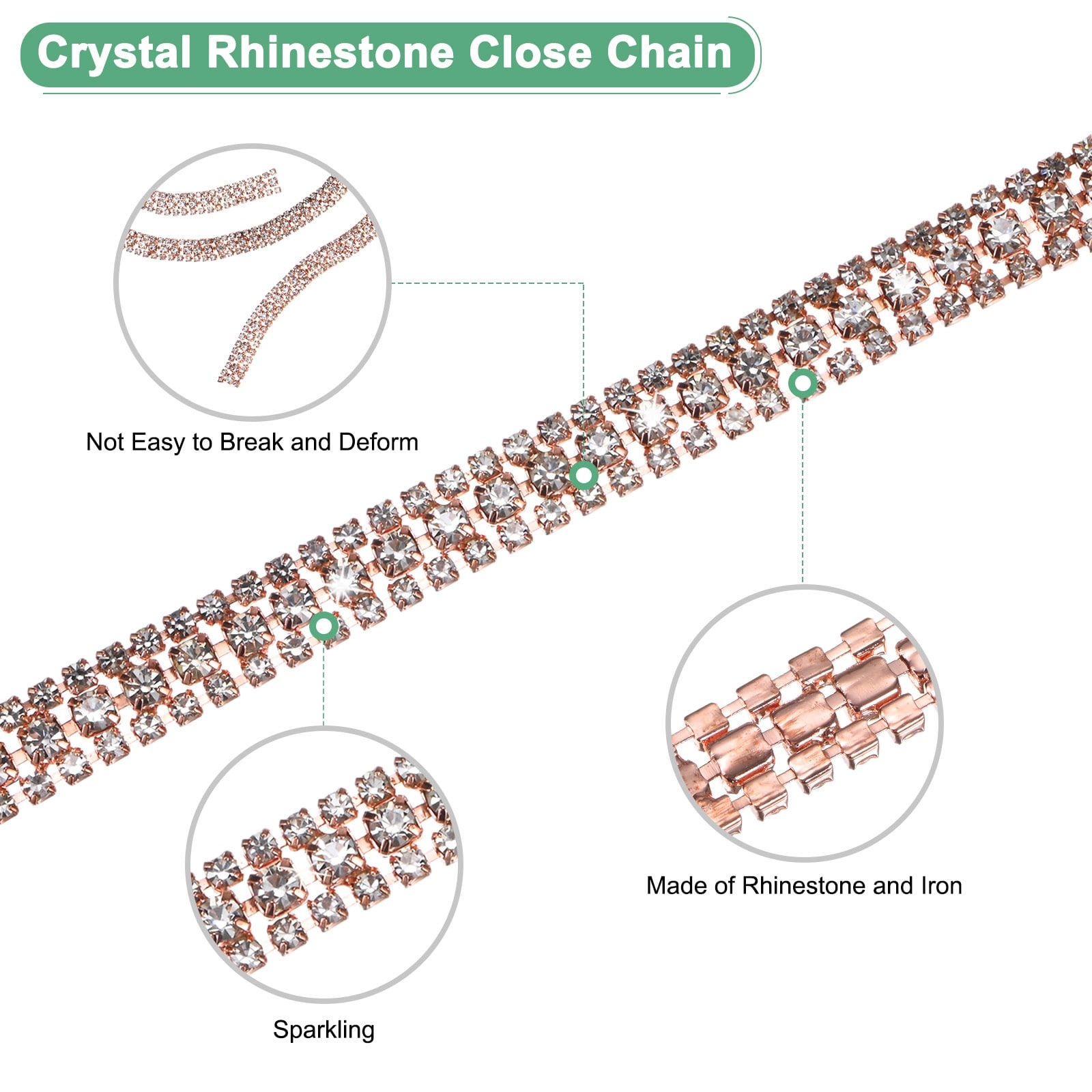 Crystal Rhinestone Close Chain Trim, Dress Embellishments, Sparkly Diamond Strips