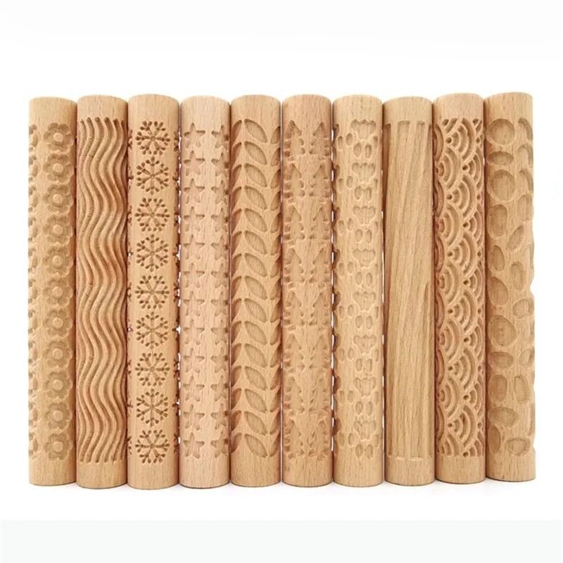 Wooden Texture Rolling Pin For Pottery, Clay, And DIY Craft Projects pattern E