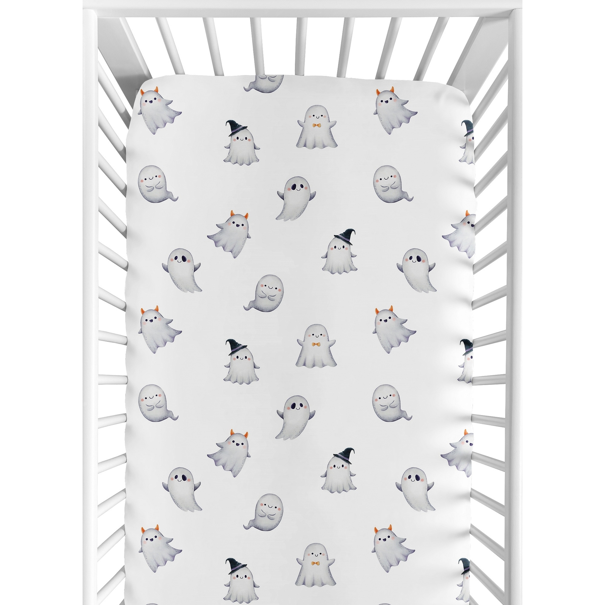 Sweet Jojo Designs Halloween Ghosts Boy, Girl, Unisex/Gender Neutral Fitted Crib Sheet - Cartoon Ghost, Spooky, Classic, Modern